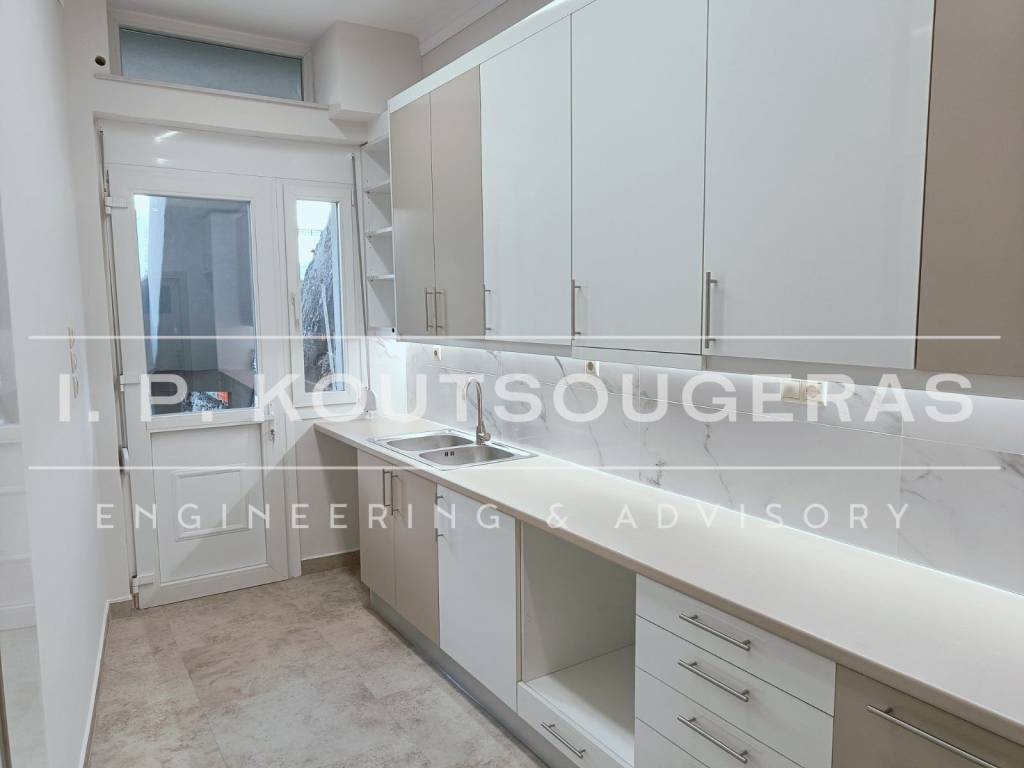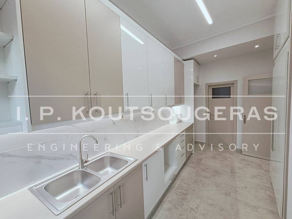 A fully independent mezzanine-floor apartment of 116 sq.m., with a 4 sq.m. storage room, is available for rent on Plapouta Street 28, in the center of Tripoli. It is located in a two-story building constructed in 1961 with reinforced concrete and stone masonry, and has a southern orientation. The apartment is quiet, bright, airy, and front-facing, featuring two balconies — one facing south and one facing north — as well as an enclosed semi-outdoor veranda. In 2025, a full renovation and energy upgrade were completed, including: New kitchen, new bathroom, and new WC New thermal-break window frames with insect screens and energy-efficient glazing New security door and triplex glass Installation of a solar water heater 3 new air-conditioning units (cooling–heating) Heat pump with new panel radiators and thermostatic valves Application of external thermal insulation Flooring: wood, terrazzo, marble, and tile Brand-new plumbing, drainage, and electrical installations The energy efficiency class is B+, ensuring very low energy consumption, while the building has zero shared maintenance fees. Suitable also for professional use.