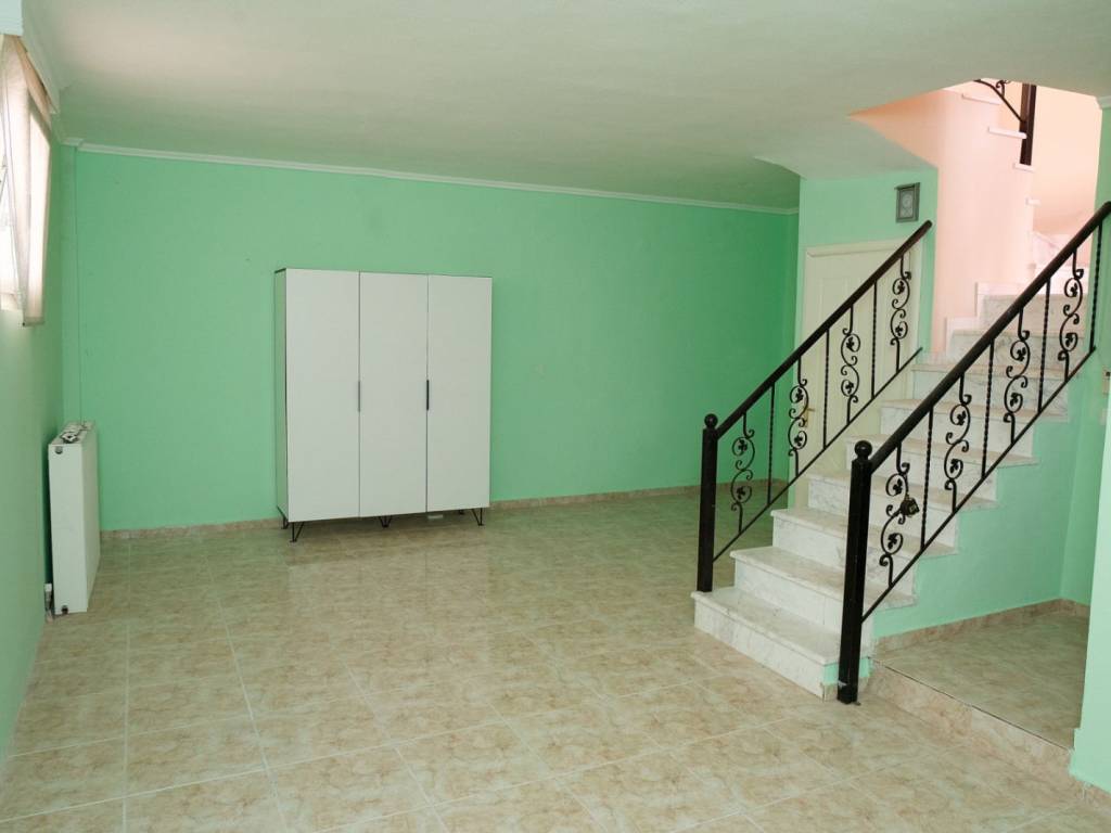 For sale: Three level maisonette of 146 sq.m. plus 12 sq.m. of auxiliary spaces (boiler room and small loft) in Hortiatis, priced at €180,000. It is located in a quiet, family-friendly neighborhood, very close to the village center, and benefits from a private yard offering comfort, relaxation, and a safe space for children or pets. The property is arranged over three levels (semi-basement, ground floor, first floor), is very bright, and enjoys beautiful, unobstructed mountain views. The yard includes two exclusive parking spaces, and the use of the outdoor area is fully private. It is an ideal choice for families seeking a high quality of life in a natural environment, combining peace and clean air with direct access to all essential amenities and services in the settlement. The property is fully legalized, has no pending issues, is immediately available, and meets the financing criteria of the “Spiti mou 2” housing program.