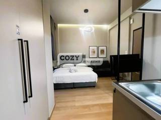 For rent: a luxury, fully renovated 28 sq.m. studio on the 3rd floor with elevator, located at Fragkon 24. It consists of an open-plan bedroom–kitchen area and a bathroom. Fully furnished and equipped with all electrical appliances.