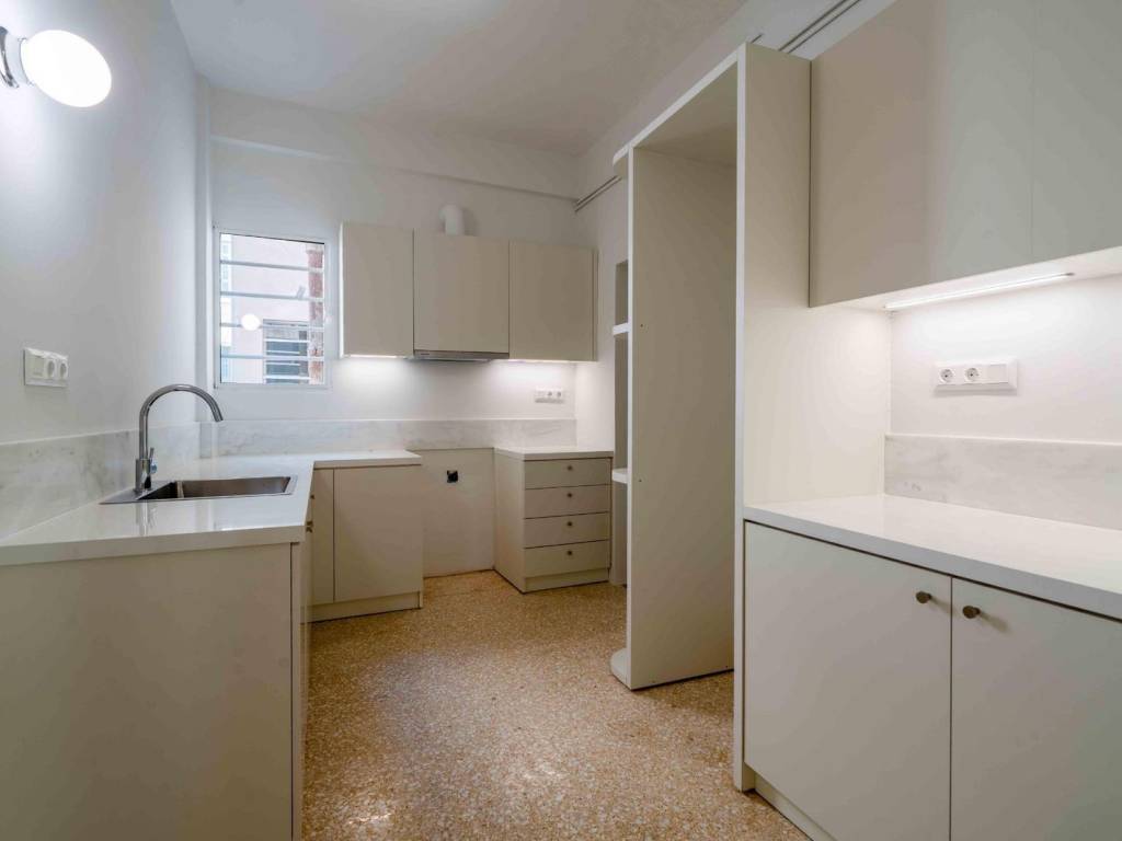A beautifully renovated second-floor apartment of 107 sq.m. is presented, offering a flexible layout ideal for both residential use and professional purposes. The apartment features a spacious living room with a balcony overlooking a tree-lined street, a separate kitchen, two bedrooms with ample built-in storage and access to a quiet inward-facing balcony, one full bathroom, a guest WC, and a storage room. High-quality materials and elegant finishes enhance the character of the property, including refined wooden parquet floors, mosaics, renovated wooden double-glazed windows, and a security door. Autonomous natural gas heating and inverter air-conditioning units ensure comfort and energy efficiency throughout the year. The apartment is situated in a well-maintained building with an elevator and low monthly communal fees, making it an exceptional choice in a highly convenient location. Location: Kypseli is one of the oldest neighborhoods in the city and one of the most interesting places to live in Athens. It is bordered west by Patision Street, south by Pedion tou Areos, east by Tourkovounia and north by the municipality of Galatsi. Unique features: The main attraction in Kypseli is the pedestrian street in Fokionos Negri. It consists of a large strip of green in the center, with trees, benches, fountains and statues, surrounded by cafes on both sides, restaurants and shops. A typical example of Athenian modernism in Fokionos Negri is the Municipal Market, which was renovated by the Municipality of Athens in 2016. Agios Georgios Square is just a few minutes away from Fokionos Negri and is the new popular spot of the city. An area that is in itself a small neighborhood. An architectural remark of the square is the buildings that surround it, thanks to their curvature look. A prominent place in the life of the inhabitants are Pedion tou Areos, one of the largest public parks in Athens, the Elikonas hill which includes sports facilities and the Attiko Park in Ano Kypseli. Furthermore, there are many small theaters and some artist studios in the area, giving a bohemian feel to the area. Accessibility: Extremely good bus and trolleybus connection, Victoria station is nearby. Investment potential: This area is in the centre of Athens, an area that has always enjoyed a lot of interest from buyers. Guaranteed returns on investment.