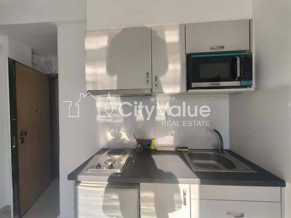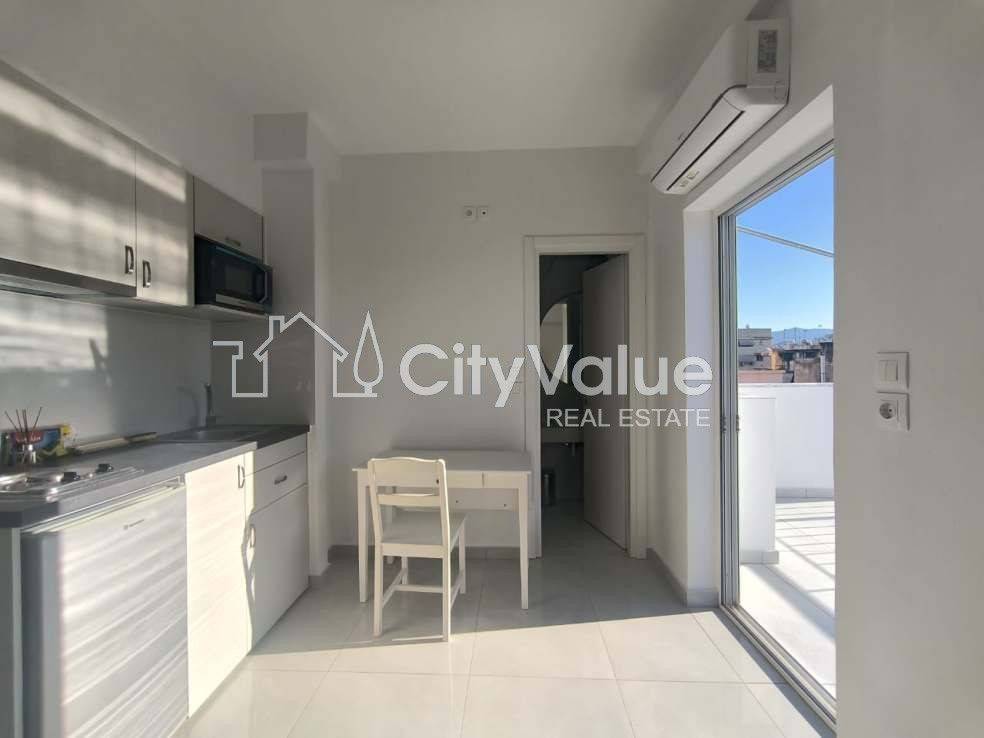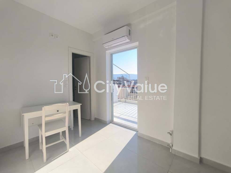 Top-floor studio apartment (penthouse) for rent on the 5th floor, with a surface area of 20 sq.m., consisting of one room, a bathroom, and a large terrace. Bright, quiet, and fully renovated – equipped with household appliances. It features air conditioning, awnings, a solar water heater, a security door, and double-glazed aluminum window frames. The location shown is indicative and not exact. Available for long-term lease.
