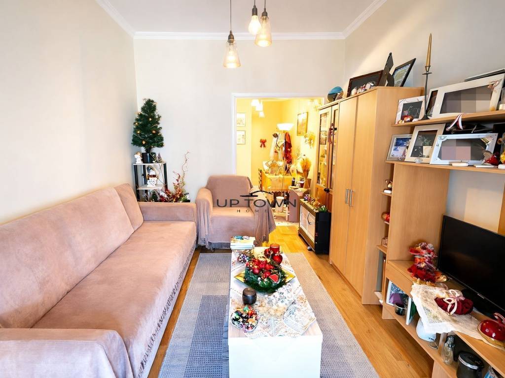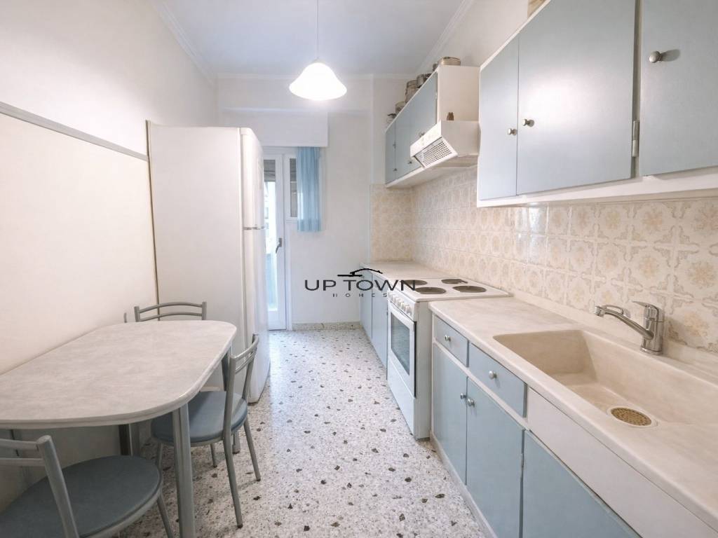 Second-floor apartment in Agios Eleftherios, with a total area of 53 sq.m., located in a well-maintained apartment building. It consists of a comfortable living room, functional kitchen, one bedroom, and a bathroom. The apartment features a security door, elevator, aluminum window frames with double glazing, insect screens, and central oil heating. Additionally, it offers a spacious veranda with awnings, providing extra comfort and protection from the sun.