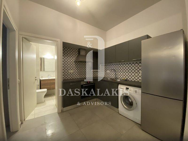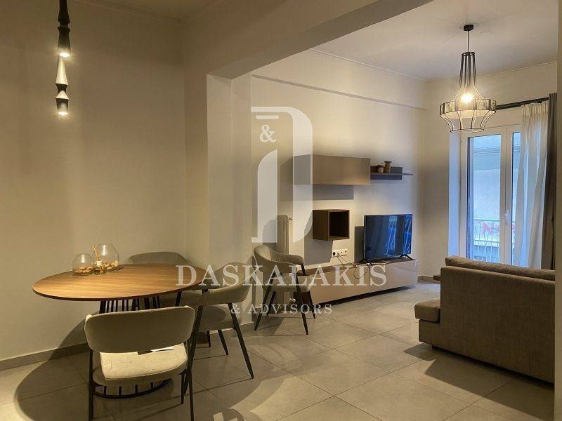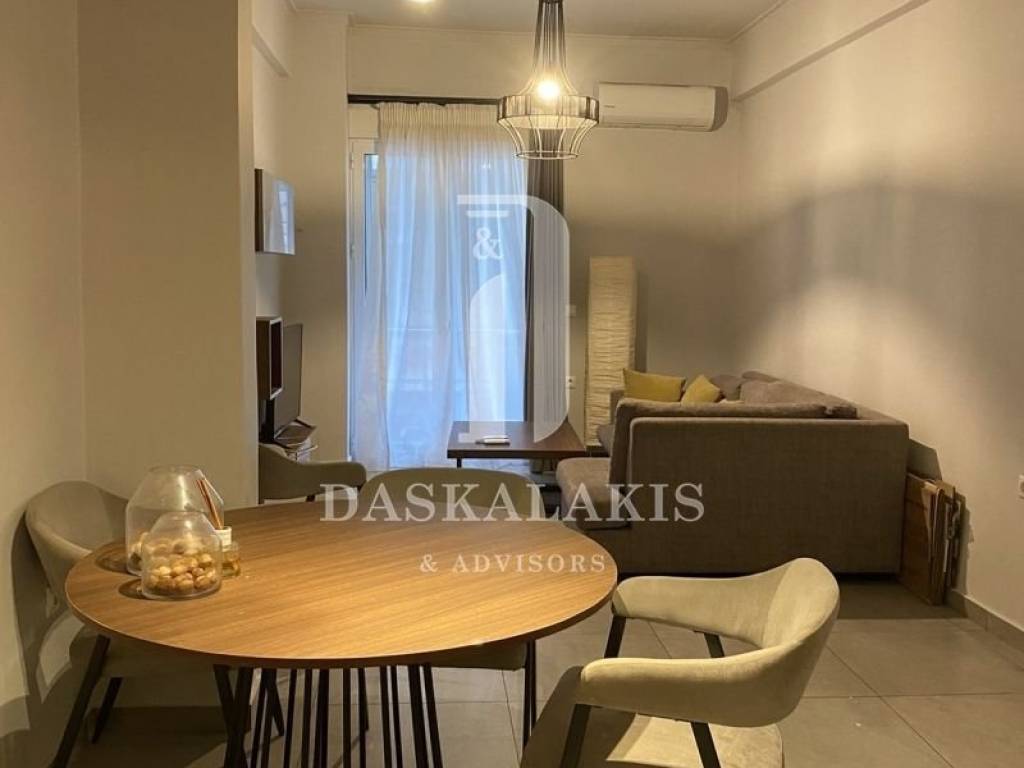 Kypseli: A fully furnished and equipped apartment of 55 sqm on the elevated ground floor is available for renting. It consists of 1 large living room with kitchen and dining area, 1 bedroom, 1 bathroom and 2 small balconies. The apartment has steel frames with double-glazed windows, oil central heating, two airconditioners, floor tiles and a safety door. It's 350 meters away from Kypseli square. Property Code: 9-2360