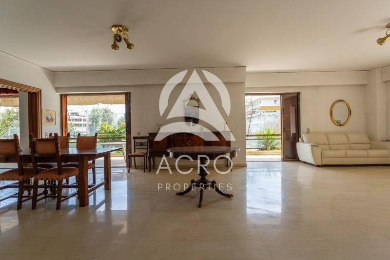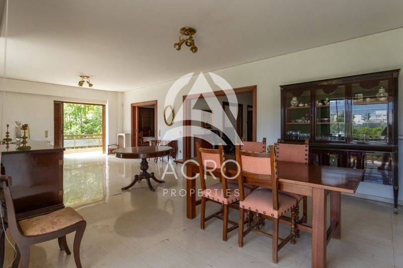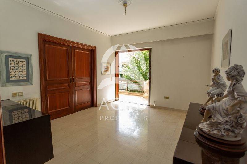 Property code: 2-55 - Neo Psychiko FOR SALE exclusively FLOOR APARTMENT on the 1st floor of an apartment building (consisting of a total of 3 floor apartments) with a total area of 240 sq.m. free on all sides. It consists of 4 bedrooms with very large built-in wardrobes, a reception area, a hallway with storage spaces, a huge living room, a large kitchen which also has a separate pantry room with storage spaces on both sides, a living room with a fireplace and 2 large bathrooms. In addition, it also has a room which was used as an office and can also be configured either into bedrooms or as a utility room. It was built in 1980 and has autonomous heating with oil, a view of a square, sliding aluminum frames with wooden shutters, marble and wood floors, security door, built-in wardrobes, elevator, 1 parking space in the piloti, a 15 sq.m. storage room in the basement, 70 sq.m. balconies. At 1200 meters (10 minutes walk) is the Cholargos metro station. The surrounding area of the building is comfortable and has trees and general greenery that make living very pleasant. - Price: € 575,000
