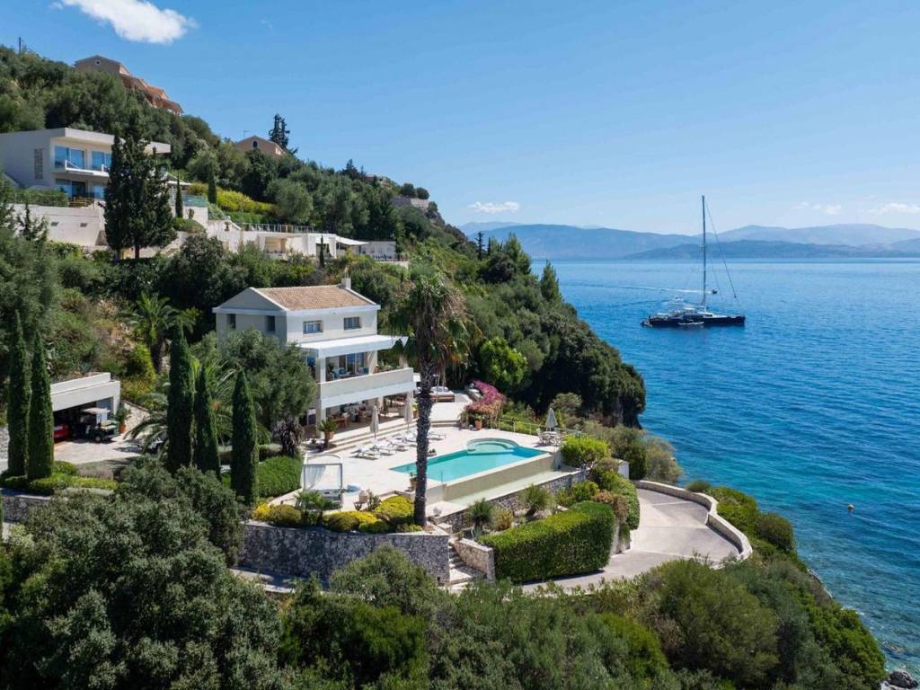 Discover the epitome of luxury in this stunning smart home of 1 suite and 6-en suite bedrooms, 10-bathroom residence in the enchanting city of Corfu. Spanning an impressive 604 square meters, these extraordinary homes, built in 2019, offers unique garden architecture of local combined with exotic plants, unparalleled opulence and breathtaking views of Corfu town, the ocean, mountains, and lush greenery. Located in the most front sea line, it is a perfect calm spot for those who seek the privilege of a “Beach Villa“ with a private beach, a mooring, and private jetty access for rental boats. Step inside to experience the grandeur of spacious sea view rooms adorned with elegant Italian wooden flooring. The expansive living spaces, complete with Siberian and Swedish lerche wood double glass balcony doors, Austrian furniture, built-in cupboards, a furnished indoor and pool garden kitchens, and fixed furniture, exude sophistication. The seamless integration of a full basement, office room, a charming patio, and a delightful terrace measuring 900 square meters enhances the home's allure. This property is a haven of luxury, featuring beach cave dining area, two infinity heated swimming pools, pool side dining areas with automated pergolas, fireplace, gym, jacuzzi, and seaview sauna, offering a resort-like experience. With direct sea access and comprehensive security systems, including electronic gates and a safety door, peace of mind is assured. Embrace the ultimate in luxurious living with this exceptional Corfu residence, where every detail has been meticulously crafted to provide an unrivaled lifestyle. Corfu is one of the Ionian Islands' most sought-after destinations, with a mature real estate market and strong international appeal. Known for its cultural heritage, excellent air connectivity, and premium tourist infrastructure, it continuously attracts buyers from Greece and abroad. Demand focuses on sea-view villas, tourist complexes, and historic properties in the Venetian old town. Despite competition, the market remains vibrant, offering high returns through short-term rentals and strong capital appreciation for luxury assets