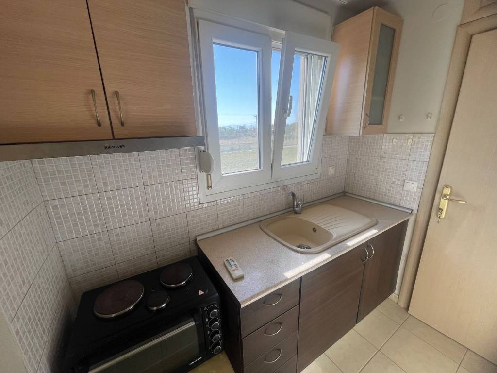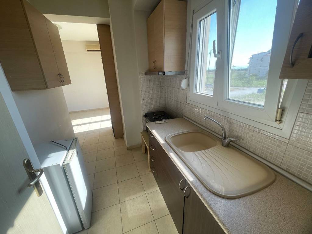 Διεθνές Πανεπιστήμιο Θεσσαλονίκης Σίνδος, στο Ιατρικό κοινωνικό κέντρο, στάση αστικών λεωφορείων "Τρίτο Δημοτικό Σχολείο", σε αγορά, δίπλα σε σούπερ μάρκετ, κρεοπωλείο, φούρνο, καφέ, επιπλωμένο, περιλαμβάνει ντουλάπα, καναπέ, τραπεζάκι, έπιπλα κουζίνας με ηλεκτρικές συσκευές φουρνάκι, απορροφητήρας, κλιματιστικό, ατομικό μπαλκόνι, κεντρική κεραία, κατάλληλο για φοιτητή -τρία