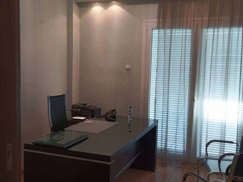 ΠΟΛΥΤΕΛΕΣ ΓΡΑΦΕΙΟ ΤΟΥ ΠΡΩΤΟΥ ΟΡΟΦΟΥ ΣΤΟ ΚΕΝΤΡΟ ΤΗΣ ΠΟΛΗΣ. ΤΟ ΓΡΑΦΕΙΟ ΑΠΟΤΕΛΕΙΤΑΙ ΑΠΟ ΤΡΕΙΣ ΧΩΡΟΥΣ ΚΑΙ ΜΠΑΝΙΟ. Ο ΠΡΩΤΟΣ ΧΩΡΟΣ ΕΧΕΙ ΕΝΑ ΠΛΗΡΕΣ ΕΞΟΠΛΙΣΜΕΝΟ ΓΡΑΦΕΙΟ ΚΑΙ ΜΕ ΝΤΟΥΛΑΠΕΣ ΓΡΑΦΕΙΟΥ ΚΑΙ ΜΕ ΜΠΑΛΚΟΝOΠΟΡΤΑ ΠOY ΒΓΑΙΝΕΙ ΣΤΟ ΜΠΑΛΚΟΝΙ. Ο ΔΕΥΤΕΡΟΣ ΧΩΡΟΣ ΕΙΝΑΙ ΣΑΝ ΥΠΟΔΟΧΗ ΚΑΙ ΣΕ ΣΥΝΕΧΕΙΑ ΤΟΥ ΠΡΩΤΟΥ. ΚΑΙ Ο ΤΡΙΤΟΣ ΧΩΡΟΣ ΠΟΥ ΜΕ ΜΠΑΛΚΟΝΟΠΟΡΤΑ ΒΓΑΙΝΕΙ ΣΤΟ ΜΠΑΛΚΟΝΙ, ΑΠΟΤΕΛΕΙΤΑΙ ΑΠΟ ΕΝΑ ΜΕΓΑΛΟ ΚΑΝΑΠΕ, ΤΡΑΠΕΖΑΚΙΑ ΚΑΙ ΕΝΑ ΓΡΑΦΕΙΟ ΜΕ ΚΑΡΕΚΛΑ. ΣΤΟΝ ΙΔΙΟ ΧΩΡΟ ΥΠΑΡΧΕΙ ΚΑΙ ΠΡΟΣΤΑΤΕΥΜΕΝΟ ΚΟΥΖΙΝΑΚΙ ΜΕ ΨΥΓΕΙΟ, ΝΕΡΟΧΥΤΗ, ΠΑΓΚΟ, ΡΑΦΙΑ ΚΑΙ ΠΑΡΑΘΥΡΟ. ΥΠΑΡΧΟΥΝ ΕΠΙΣΗΣ ΟΛΑ ΤΑ ΑΞΕΣΟΥΑΡ ΓΙΑ ΤΗΝ ΛΕΙΤΟΥΡΓΙΑ ΕΝΟΣ ΒΑΣΙΚΟΥ ΓΡΑΦΕΙΟΥ. ΣΤΟ ΜΠΑΝΙΟ ΥΠΑΡΧΟΥΝ ΟΛΑ ΤΑ ΕΙΔΗ ΥΓΙΕΙΝΗΣ, ΠΑΡΑΘΥΡΟ ΚΑΙ ΜΠΑΝΙΕΡΑ. ΤΑ ΔΑΠΕΔΑ ΕΙΝΑΙ ΜΕ ΠΛΑΚΑΚΙΑ, ΕΝΩ ΤΟ ΚΕΝΤΡΙΚΟ ΓΡΑΦΕΙΟ ΕΙΝΑΙ ΜΕ LAMINATE. ΥΠΑΡΧΟΥΝ ΔΥΟ ΚΛΙΜΑΤΙΣΤΙΚΑ ΣΤΟΥΣ ΔΥΟ ΧΩΡΟΥΣ. Η ΕΞΩΠΟΡΤΑ ΕΙΝΑΙ ΑΣΦΑΛΕΙΑΣ ΚΑΙ ΤΟ ΓΡΑΦΕΙΟ ΕΧΕΙ ΣΥΝΑΓΕΡΜΟ. ΣΕ ΟΛΗ ΤΗΝ ΠΡΟΣΟΨΗ ΤΟΥ ΓΡΑΦΕΙΟΥ, ΥΠΑΡΧΕΙ ΜΠΑΛΚΟΝΙ ΠΟΥ ΒΛΕΠΕΙ ΣΤΟΝ ΚΕΝΤΡΙΚΟ ΔΡΟΜΟ.
