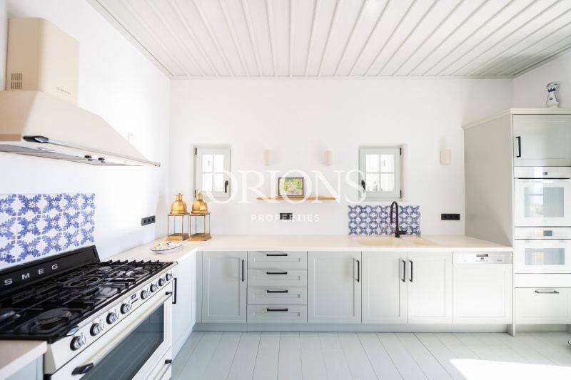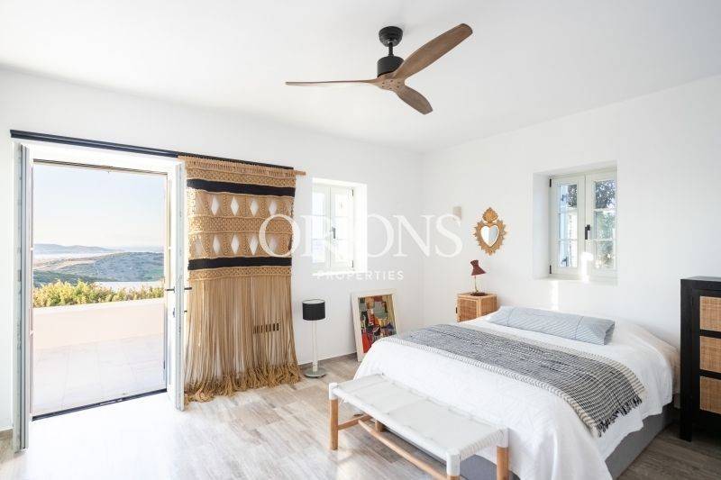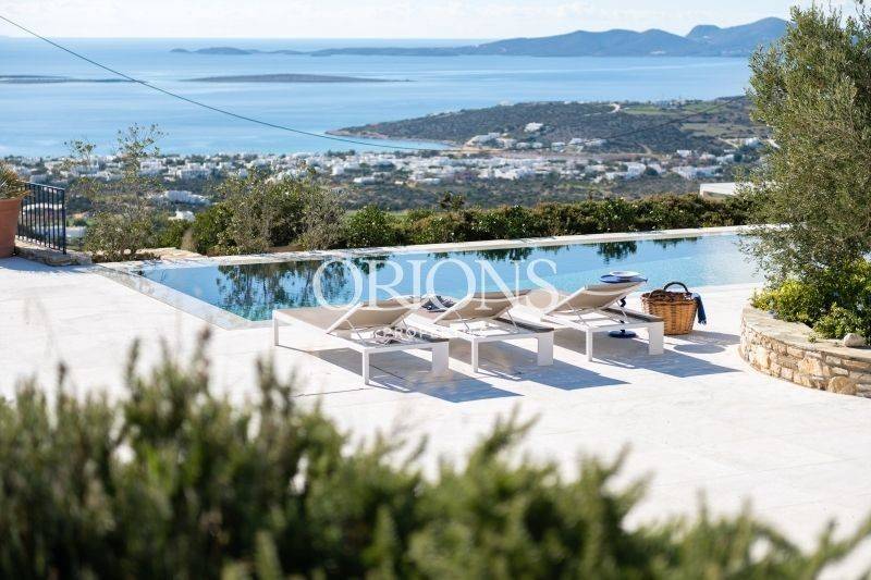 A unique and expansive estate set in one of the most open and panoramic locations of Paros, between Angeria and Kamari. The area is known for its wide horizons, low-density development, and strong sense of privacy, while remaining close to everyday conveniences. The villa faces directly toward the sunset and, thanks to its elevated position, enjoys uninterrupted views of the sea and Antiparos.