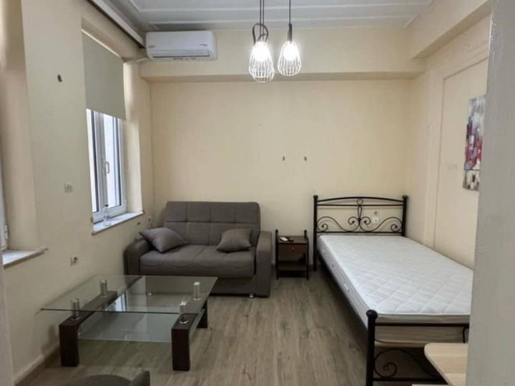 Apartment for rent in the center 35 sq.m. price 320 Consists of -kitchen -bedroom with living room -bathroom -yard Features - aluminum frames - tiled floors -heating air conditioning -furnished - with electrical appliances -with Internet -many storage spaces -renovated