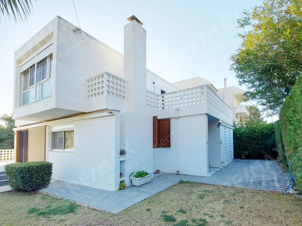 Detached house with two independent studios for sale. The property has been studied in its smallest detail and has been constructed by the architect G. Skotidas. It is a typical example of the modern movement in Greece with clear influences from traditional architecture. It is located on the plot, leaving distances from the neighbors from all parts. More specifically, the main house has a ground floor and a 1st floor with an internal staircase. The area of the ground floor is 107 sq.m. and the 1st floor is 50 sq.m. On the ground floor level it has a living-dining room, a sitting room with a fireplace, a kitchen, an internal staircase and 1 W.C. while its terrace is large with a southwest orientation and a view of the Saronic Sea. On the 1st floor level there are a small office, 2 bedrooms, two large terraces and a bathroom. Access to the garden is on the ground floor and has many seating areas and a lawn that is irrogated with an automatic irrogation system. The studios of 68.70 sq m and the warehouse of 19.50 sq m have a separate external ground floor entrance from the garden.The studios are located under the central south veranda of the main house. One has two rooms with sofa beds, a bathroom and a kitchen, while the other is a single room with a W.C. The plot is 760.40 sq.m. with trees and plantings. The open space is large. The property is heated with air conditioning units and also has solar panels. Some frames are wooden, with single glazing while others have been renovated with aluminum with double glazing. There are screens everywhere as well as external sliding shutters. The energy certificate is under issuance.The floors are marble and fit into the modern logic of the building. The bedrooms have wooden floors. Its condition is very good. It is located near the central beach of Saronida, the Square, the Church and a kindergarten. It is open, with a visual escape to the sea and the west from both levels. It is suitable for a holiday home, Short-term Lease, Rental . The remaining surface that can be built in the future is 230 sq.m. It has the following features and advantages: Fireplace, Electric Awning, Electrical Appliances, Storage Room, Garden, Lawn, Trees, Quiet neighborhood. Price: €750,000.