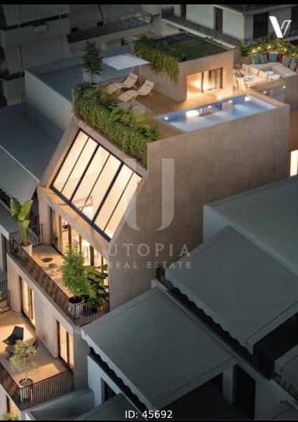 Pangrati - Apartment 224sqm bedrooms 3, levels 2, 4th - 5th, under construction, year built 2025, energy class A+, living room, hall, kitchen, semi-outdoor space, 3 bathrooms, heating type: autonomous (natural gas), air condition, quiet, dual aspect apartment, luminous, unobstructed view, frontage, painted, electric roller shutters, storage space, solar heater, external thermal insulation, balconies, large balconies, tents, elevator, loft storage, private terrace, built in appliances, aluminum frames, double glazed windows, door screen, ceramic tiles floors, separate kitchen, night electricity discount rate, secure door, alarm, luxurious, swimming pool, private pool, smart home, residential zone, access from asphalt, special offer, close to metro/train (up to 2000m), close to bus stop (up to 200m).