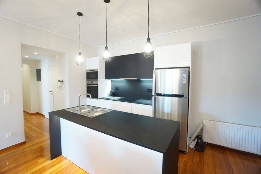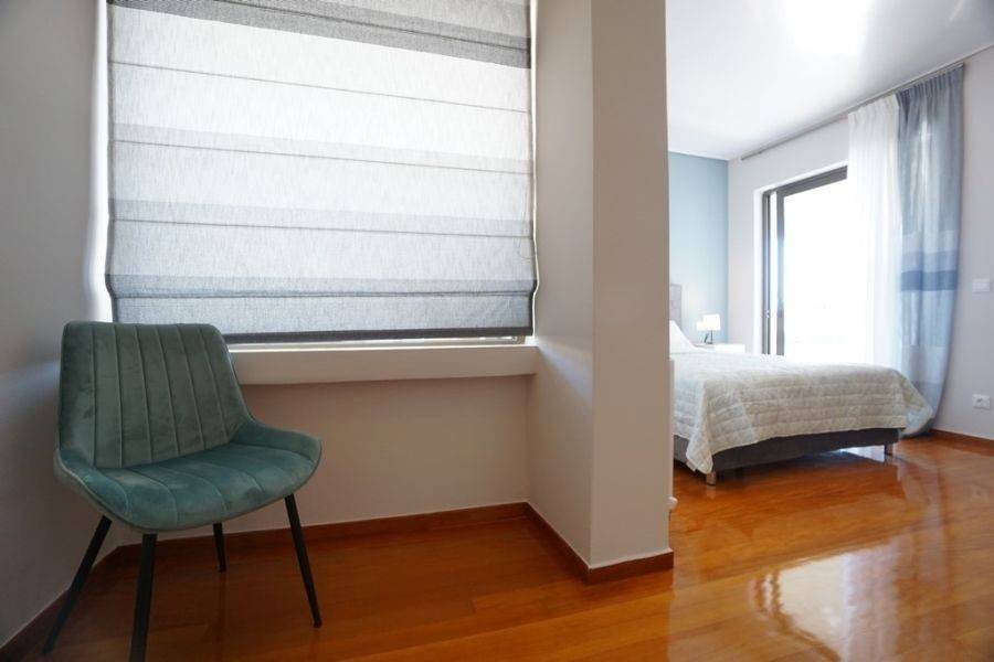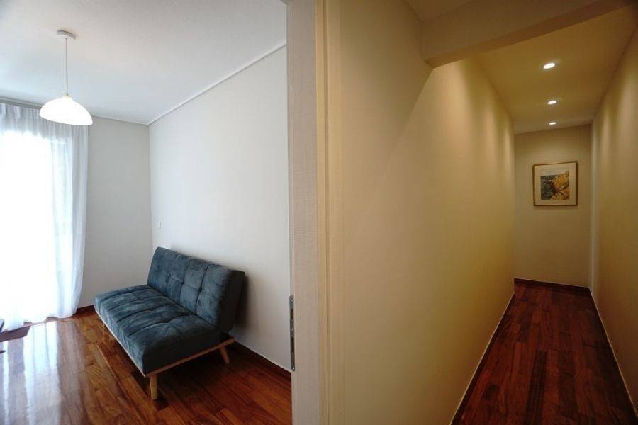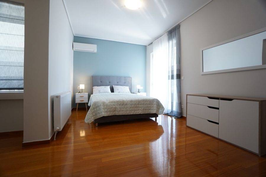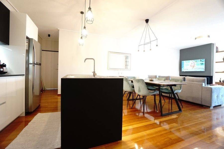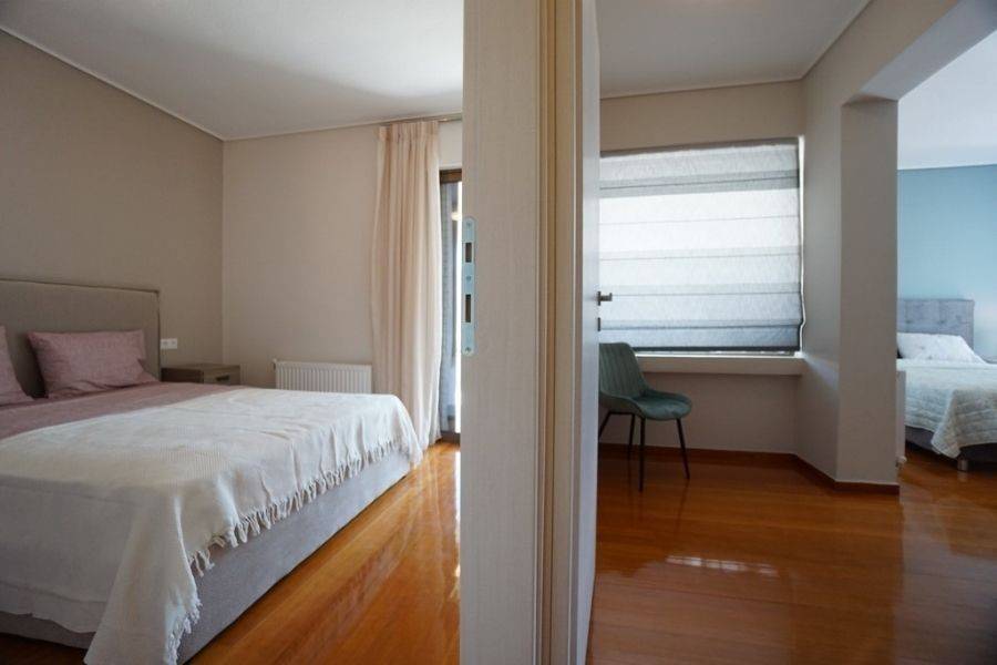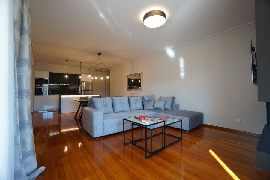 In the southern suburbs, in Glyfada, in Hesperidon Square, a fully furnished apartment of 130sq.m., 2nd floor, is available for rent. It is a fully and luxuriously renovated apartment in 2022, front view, corner and very bright. It consists of 3 bedrooms (one of which is a master), 2 bathrooms, a functionally equipped kitchen with electrical appliances and a bright living room with wooden floors and a fireplace. It has a parking space, a security door, an alarm system, a video phone door, double glazed windows and large verandas. The heating is autonomous with natural gas, while air conditioners for cooling and boilers for heating the water are also available. It is located in an amazing location, in the center of Glyfada with the very developed market and public transportation, in front of a square and very close to the beach.