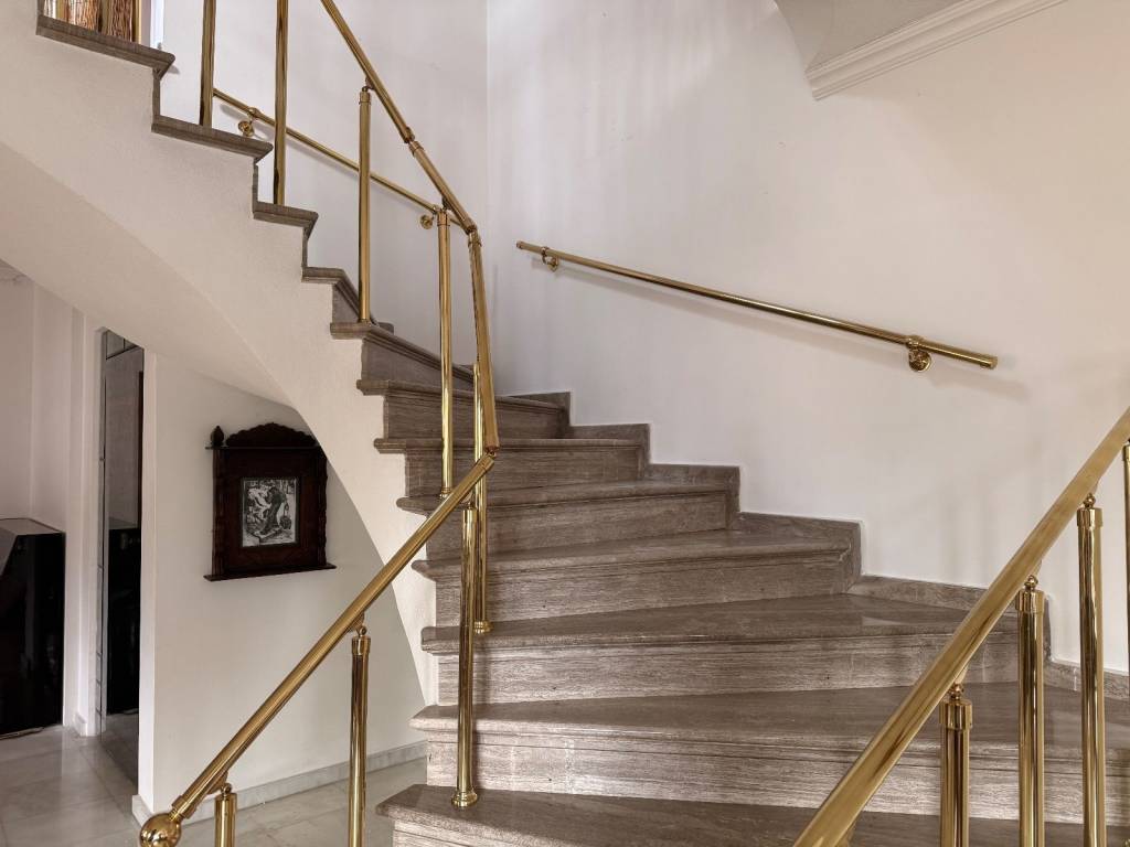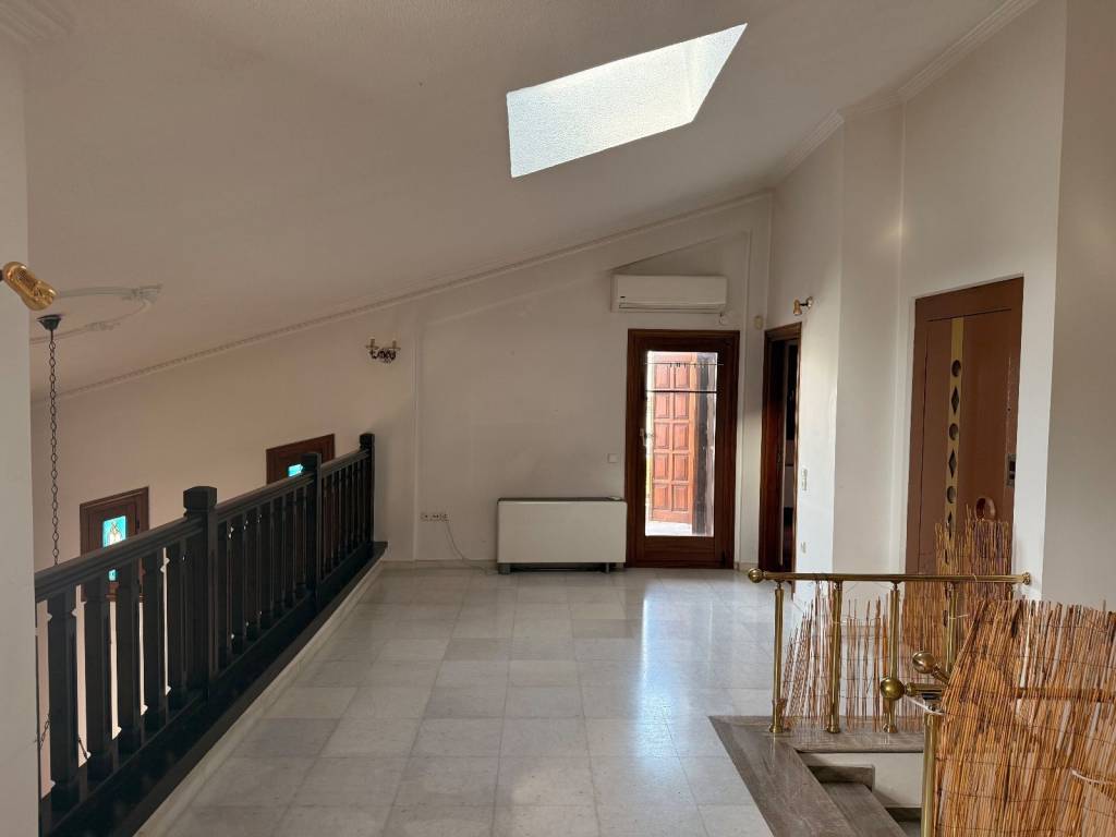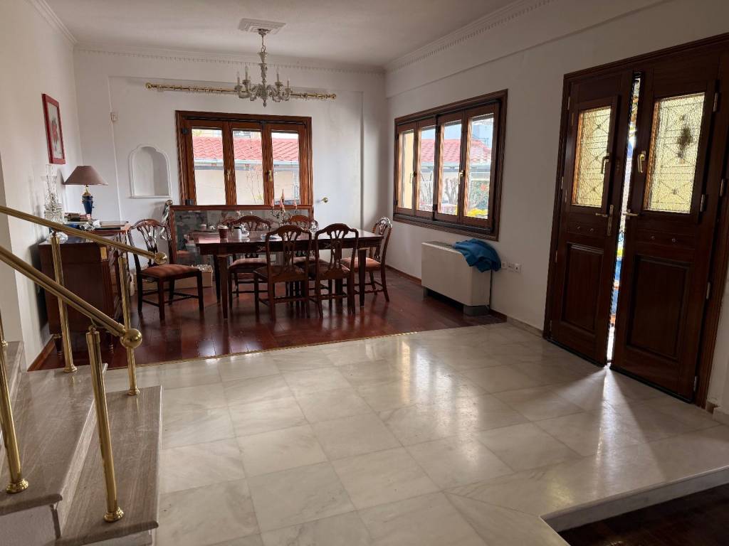 An exceptional property is for sale, with a total surface area of 430 sq.m. (290 sq.m. ground floor and first floor, plus 150 sq.m. basement), situated on a 575 sq.m. corner plot in the area of Matsopoulos Park. The property enjoys a stunning view, being located directly on the river, facing the park, which has been extensively redeveloped in recent years and, during the holiday season, hosts a large part of the “Mill of the Elves” installations. The property features a fully enclosed courtyard surrounded by a stone wall, covered parking for two vehicles at the rear, an underground garage, as well as wraparound balconies around the house. The raised ground floor includes a living area with dining space, a spacious living room with a fireplace, large windows extending up to the first floor, creating an impressive atrium with the upper-level lounge, a main kitchen with its own independent exit, one large bathroom, and two bedrooms. On the first floor, there is a sitting area with a fireplace, an open-plan living and dining area, a spacious central bathroom serving two bedrooms, and one master bedroom with its own large en-suite bathroom. Each bedroom has its own private balcony. The property offers exceptional natural light, as it is dual-aspect and features large glass surfaces, including skylights in the upper-floor living room. The basement is a large auxiliary space that can be adapted for any desired use.