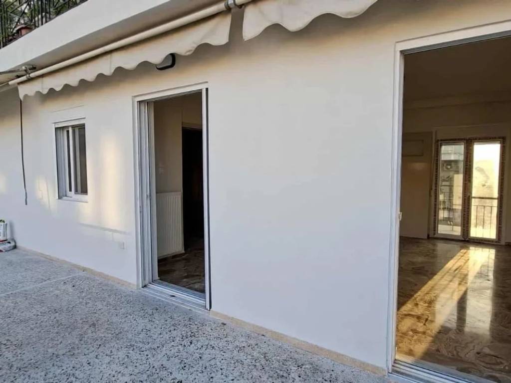 Renovated apartment 93 sq.m. 4th floor in the area of ​​Pagrati Kitchen with many cabinets, large and bright. Large living room with marble floor and comfortable hall. Comfortable bathroom with shower. Two bedrooms. Large veranda on the facade with view and awnings. Security door and aluminum frames with double glazing and screens. Central heating with natural gas.