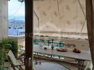 Apartment for rent in a central area in Glyka Nera. It is located close to the market, shops and transport. The apartment is fully furnished with built-in electrical appliances. It is a penthouse and is located on the third floor of a three-story building. It has two bedrooms with respective balconies with unlimited views and awnings, a central bathroom and a wc. It has autonomous central heating, solar water heater, video door phone screen and air conditioners in the bedrooms and living room. The apartment also has a 10 square meter storage room and pilot parking. Glyka Nera, Centre - Apartment 89sqm plot 500sqm, fully furnished, bedrooms 2, levels 1, 3rd, penthouse, very good condition, year built 2004, energy class A, living room, kitchen, bathroom, wc, heating type: autonomous (oil), air condition, parking ground floor, luminous, unobstructed view, frontage, storage space 10sqm, solar heater, fireplace, balconies, tents, elevator, built in appliances, aluminum frames, ceramic tiles floors, secure door, video doorbell, within city plan, residential zone, eastern orientation, access from asphalt.