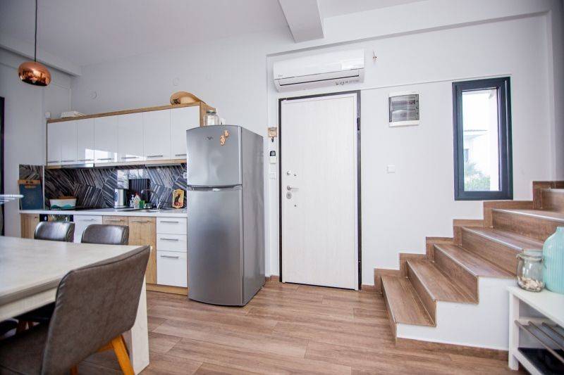Two-storey detached house of 90sq.m. on a plot of 245sq.m. in Akti Neon Kerdyllion. The house is situated in a highly privileged location, built on a hill offering panoramic sea views. The ground floor includes an open-plan living room and kitchen with large openings and unobstructed views of the Aegean Sea, one bedroom, and one bathroom.