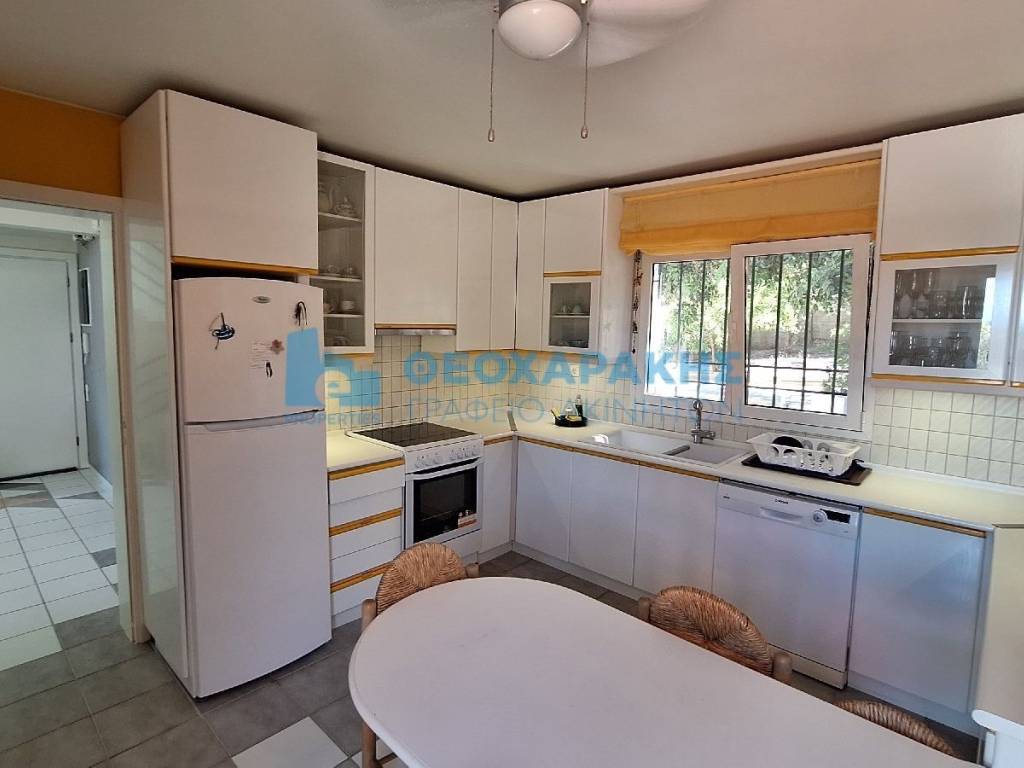 Agioi Theodoroi. Ground / 1st floor maisonette, with a total area of 130 sq.m. on a plot of 3,700 sq.m., in which there is another house. It has autonomous heating, solar water heater, fireplace, 3 bedrooms -one of which has air conditioning-, outdoor storage room 10 sq.m., 3 open parking spaces, courtyard and communal garden with views. The furniture and electrical appliances cannot be removed. Pets are only allowed outside the property. Please, have a look at photos and video. - Theocharakis Real Estate Agency - www.eproperties.gr All properties are AVAILABLE and the information listed is accurate. However, if you find any inaccuracies please let us know on our office phones or at info@eproperties.gr