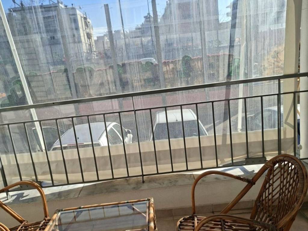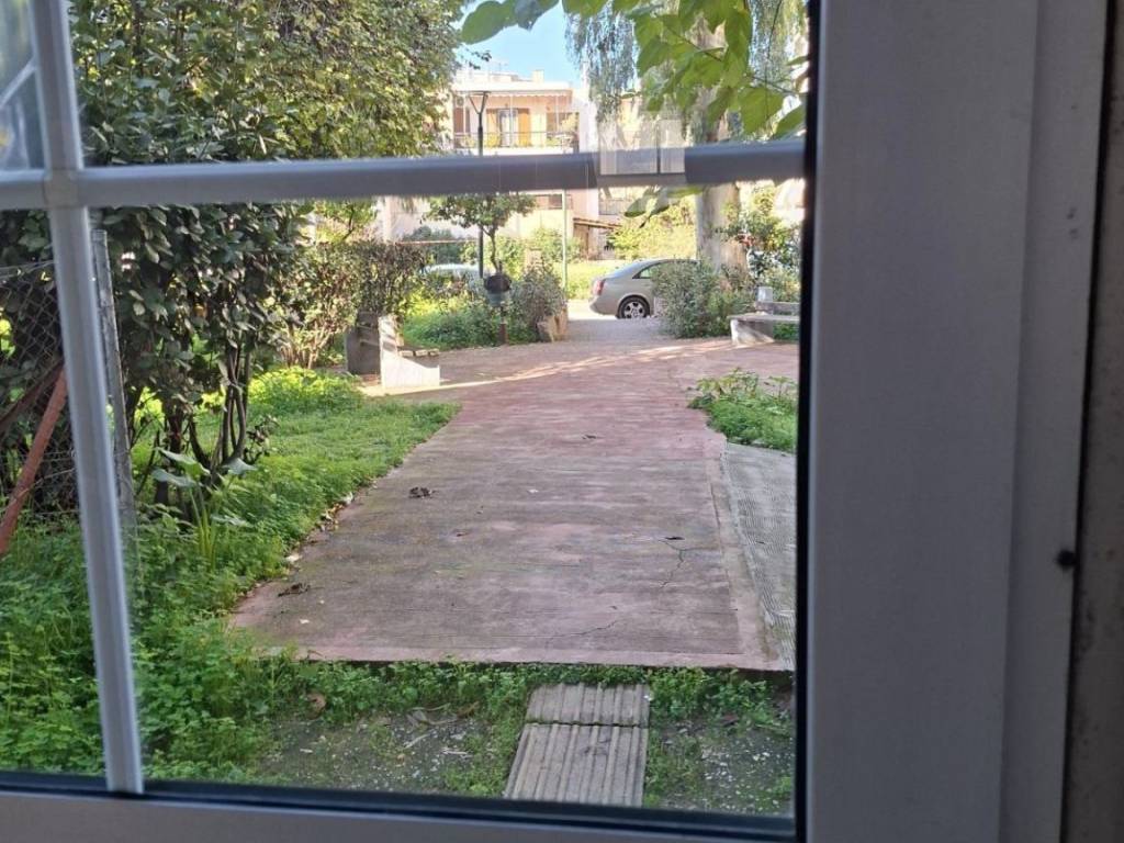 For sale in N. Philadelphia, Apomachon, apartment 86 sq m, raised ground floor, built in 1975, completely renovated in 2015, 2 bedrooms, living room, kitchen, bathroom, balcony, exclusive use of the courtyard, aluminum windows, 3-phase electricity, autonomous heating with heat accumulators, air conditioning, close to public transport, market, schools, in a complex of workers' apartment buildings