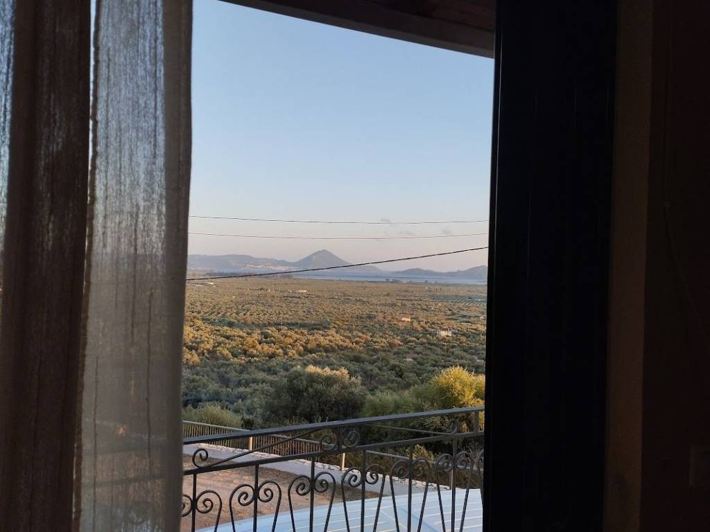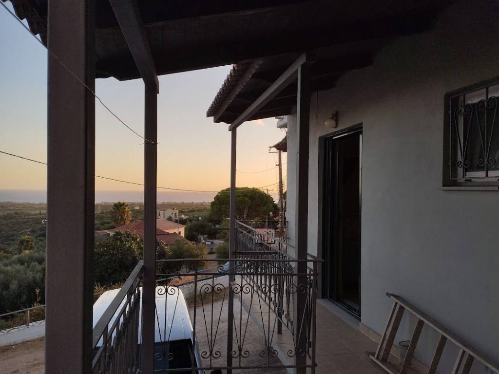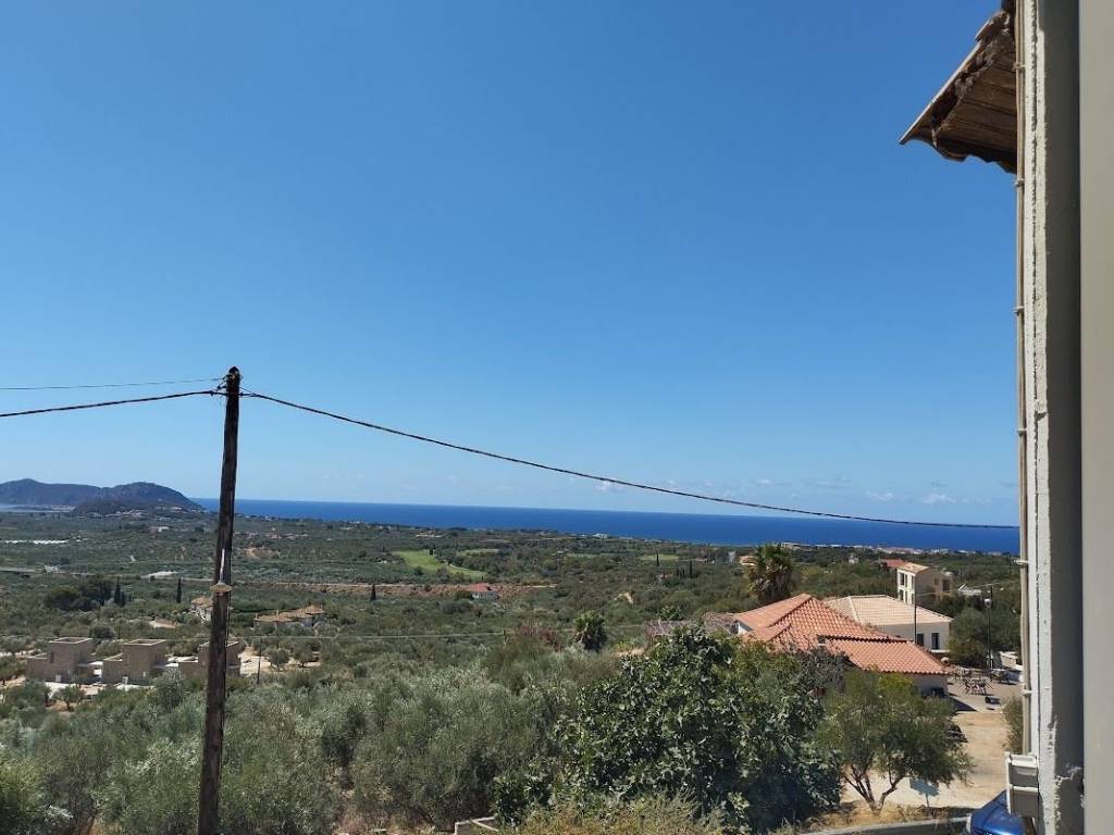 Detached house for sale in Tragana Messinia 78,98 sqm on a plot of 424 sqm with 2 bedrooms, living room, kitchen, air conditioning, central heating radiator with oil, bathroom, electric shutters in the living room, balconies with awnings and endless view, solar water heater, internet, parking. Possibility of 1st floor extensions.