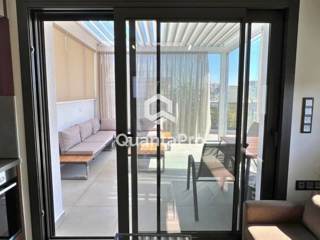 A highlight of this property is the large veranda of about 30 sq.m., fully arranged as a relaxation area with a sofa, table, and chairs. It includes a sliding pergola-roof that can open or close as needed, while the veranda is also enclosed with glass panels, creating an additional living space for all seasons, with beautiful sea views.