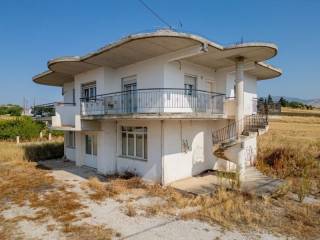 For sale is a two-story detached house with a total area of 260.06 sq m on a plot of 1,089 sq m. in Nea Zichni, Serres. The ground floor area is 138.45 sq m of single space and was built for professional use. The frames are aluminum and the floors are cement. The first floor with an area of 122.15 sq m consists of three bedrooms, a bathroom, a large living room-kitchen, a storage room and large balconies. The floors are tiled and the frames are aluminum. A radiator with an oil boiler is used to heat the house, as there is also an air conditioner. The police ID of the interested party is required to indicate the property.