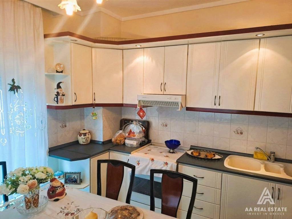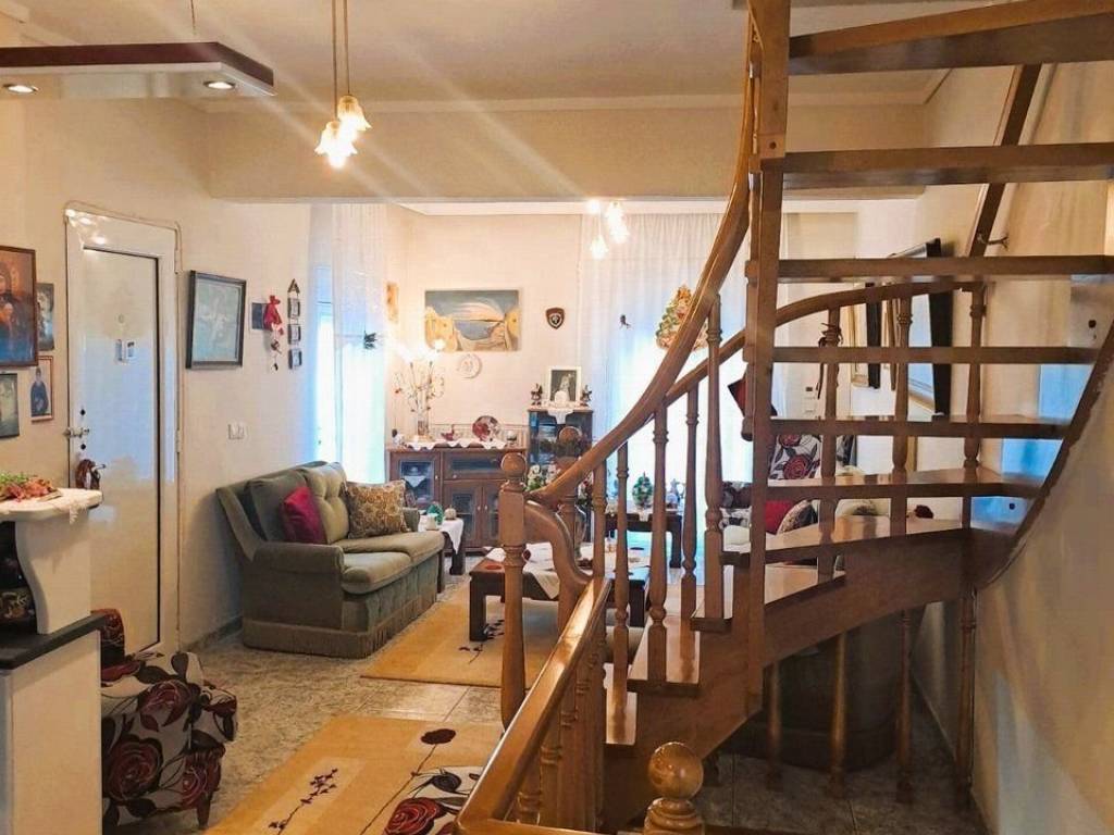 PERAIA THERMAIKOS - FOR SALE wonderful three-story maisonette, bright, corner, total area 150 sq.m., 800 meters from the sea. It consists of 2 bedrooms, 2 living rooms, 2 kitchens, bathroom and WC. storage room, comfortable balconies in all rooms and courtyard on the ground floor. It was built in 1991 and is in excellent condition and in a high degree of maintenance. It has a beautiful high-quality internal wooden staircase that reaches all floors of the property, high-quality aluminum frames with double glazing with screens, tiled floors, security door, wardrobes, parking, storage room, fireplace, A/C, alarm. Heating with autonomous natural gas. It has a wonderful view of the green surroundings 1st level: consists of a spacious living room with fireplace, kitchen and toilet. From this space there is an exit to the courtyard with the comfortable living room. outdoor storage. It can be a separate residence. 2nd level: Consists of a single comfortable space where there is another kitchen, dining room, and the main living room with a comfortable balcony. 3rd level: We find 2 large bedrooms, storage room and bathroom, there are also large balconies. Located in the center of Perea, next to shops, parks, schools, services, bus stop, etc. It is an excellent choice for families, as it has comfortable spaces and provides all the necessary amenities for a wonderful life. open parking spaces 1, distance from the beach 800, number of entrances 2, number of floors in the building 3, painted, terace, type of glass duble, energy class Γ, indoor lader, zone residential, garden, air conditioning, frames aluminium, equiped, security door, orientation eastwest, facade, insect screen, alarm, flooring type tile, bright
