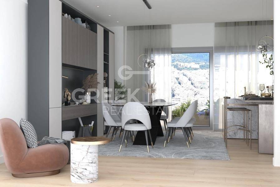 Argyroupoli, Centre - Floor Apartment 126sqm bedrooms 3, 2nd, under construction, energy class A+, living room, kitchen, 2 bathrooms, heating type: autonomous (electricity), air condition, parking ground floor+covered, dual aspect apartment, luminous, unobstructed view, storage space 13sqm, solar heater, fireplace, balconies, large balconies, elevator, garden, garden 60sqm, aluminum frames, double glazed windows, door screen, wood & tile floors, secure door.