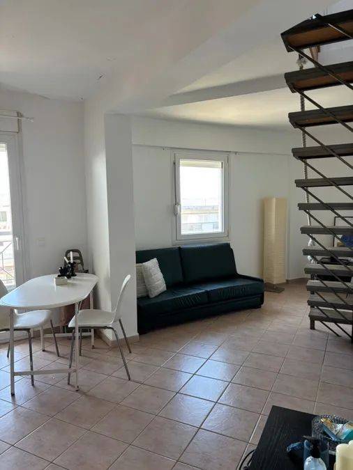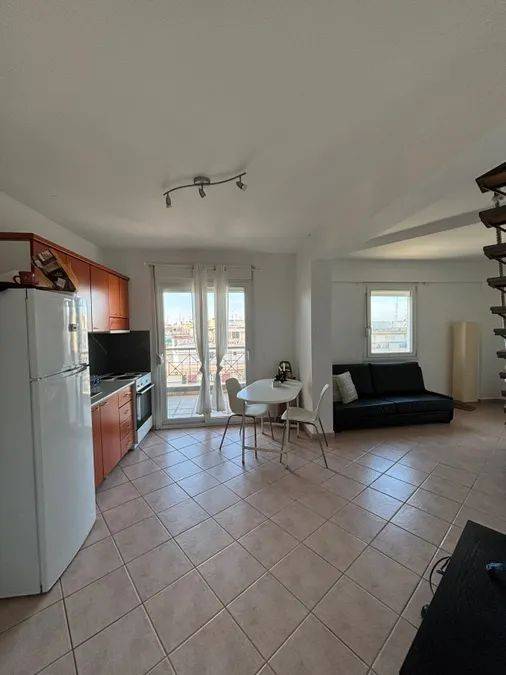 PAPAFI - 60sqm loft for rent on the 5th floor (penthouse) of an apartment building built in 2000. It is ideal for a couple, students, or workers looking for comfort and style in one of the liveliest neighborhoods of Thessaloniki. Why choose it: ️ It consists of 2 floors, on the first there is a living room and kitchen and the bathroom and on the 2nd floor is the bedroom. The house is fully furnished and equipped. ☀️ Bright with northeast orientation and unlimited view. Security door and synthetic frames with double glazing. ❄️ Individual heating with 2 air conditioners for cooling and heating all year round. Comfortable and spacious bathroom with modern sanitary ware. Location: Right next to a main road. Close to supermarkets, convenience stores, bus stops, pharmacies, restaurants, shops. 50m from bus stop and 450m from metro stop and 900m from the sea. Price: 550€/month (shared utilities 12€) Property Code: L12.210 Don't miss the opportunity to live in a practical and elegant home! Call now at 2310 818618/6948874222 or send an email to info@liapatisrealestate.com to make an appointment! For the suggestion, a police ID and VAT number are required (Law 4072/11-4-2012 Government Gazette 86 A)