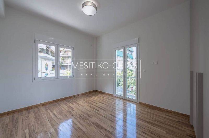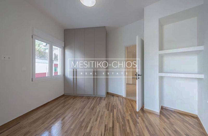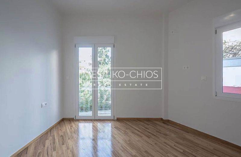 Zografou University Campus Zografou FOR SALE renovated ground floor apartment, elevated, total area 74.00 sq.m. . It consists of 2 bedrooms, living room, bathroom. It was built in 1970 with energy class Z and was renovated in 2025. It has central heating - oil, park view, aluminum frames, tiled and wooden floors, built-in wardrobes, elevator, double glazing, opening distance from sea 10000 meters distance from airport 21000 meters distance from metro 1800 meters - Price: € 179,000