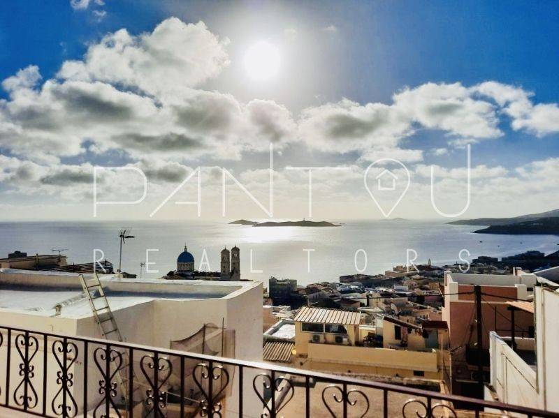 At €160,000, this property tells a clear story: entry into the Cyclades + view + Ermoupoli + roof terrace.