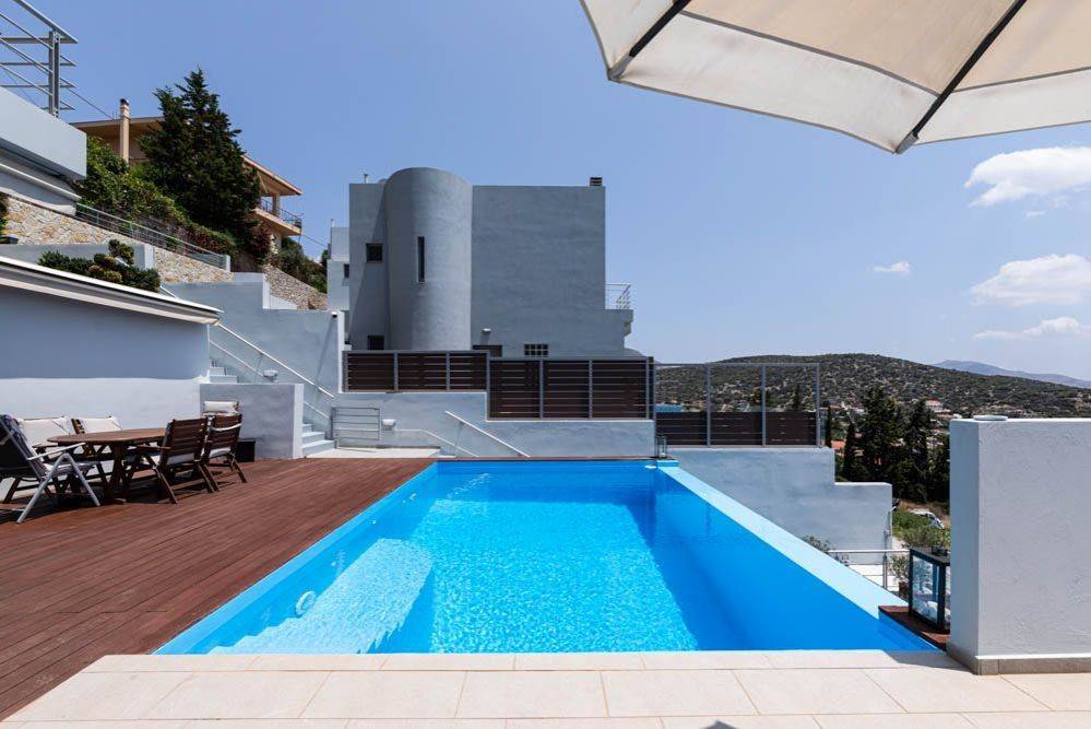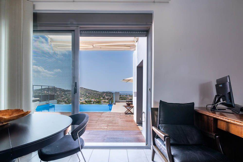 A unique amphitheatrical maisonette in the area of Agia Marina Koropi, with a wonderful view, just 800 m from the coastline, will offer its new owner literally a wide open window to the sea! The maisonette, with a total area of 275 sq.m., is located on a plot of 381 sq.m. and extends over 4 levels. On the first level, externally we find an infinity pool and a lovely deck with an outdoor dining area, an ideal space for gatherings with views of the sea and the open horizon. Moving inside, there is the daily living room, with an open plan kitchen and a wc, as well as storage space. On the second level is the main living and dining room, as well as a second open plan kitchen and another wc. Both the first and second levels have separate entrances, offering autonomy to the floors. Moving up to the third level, we find two bedrooms with lovely sea views and a bathroom, while there is a third space that can be used either as a third bedroom, a wardrobe or an office. From this space the internal staircase leads to the fourth level-loft, where there is another bedroom with its bathroom and a veranda with breathtaking views! The property is heated with oil, is fully air-conditioned and has an enclosed garage with two parking spaces. There is also an elevator that connects the garage level to the ground floor, with a study and possibility of expansion on all levels. Location: Koropi is just 8 km away from the international airport and 16 km from Athens, on the eastern rim of the Hymettus mountain. Unique features: Koropi is surrounded by olive orchards, vineyards, fig plantations and offers a slice of country living very close to the city. The area, known as Mesogaia, is home to ancient ruins and to the stunning Vorres Museum. Koropi is very close to the seaside suburbs of Porto Rafti and Varkiza as well as to Markopoulou’s equestrian centres. Accessibility: Koropi station is served by the Athens Metro as well as suburban trains. Its proximity to the Attiki Odos highway makes it easily accessible to the city centre. Investment potential: An area with new infrastructure that is likely to draw interest.