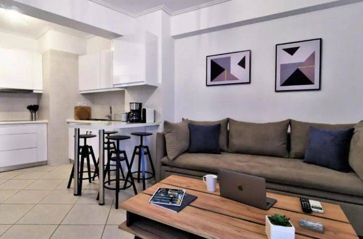 Luxury Renovated Apartment in Neos Kosmos A fully renovated, modern luxury apartment of 50 sqm is available for rent in a prime location in Neos Kosmos, just 200 meters from the Metro station. Located on the 2nd floor of a well-maintained building with elevator, the apartment is thoughtfully designed with high-quality finishes and contemporary aesthetics. It features 1 bedroom, 1 bathroom, a comfortable living area, and a fully functional kitchen. Key features include: Private parking space in a covered pilotis Air conditioning and autonomous smart natural gas heating High-speed fiber optic internet Washing machine Balcony overlooking the building’s garden The apartment is quiet, bright, and well-ventilated.