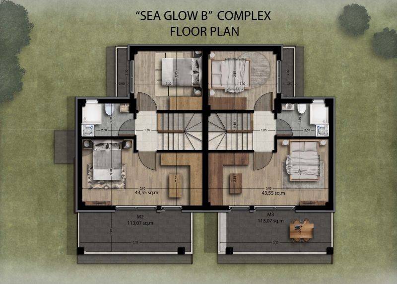 3 Μεζονέτες από 113,07τ.μ. έως 117,91τ.μ, που αποτελούνται από σαλοκουζίνα, 4 υπνοδωμάτια, 2 μπάνια.
