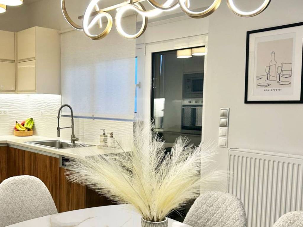 Apartment 84sqm, second floor penthouse, 2 bedrooms, living room, kitchen, bathroom, fireplace, storage room, private parking space in the underground parking lot, elevator, private use of 54sqm terrace. Individual heating system , solar water heater, 3 air conditioners, balconies in each room, bright with excellent natural ventilation. Ideal location, just 5 minutes from Eleftherios Venizelos International Airport and 15 minutes from the seaside area of Porto Rafti. No agent’s fee. Approximate location