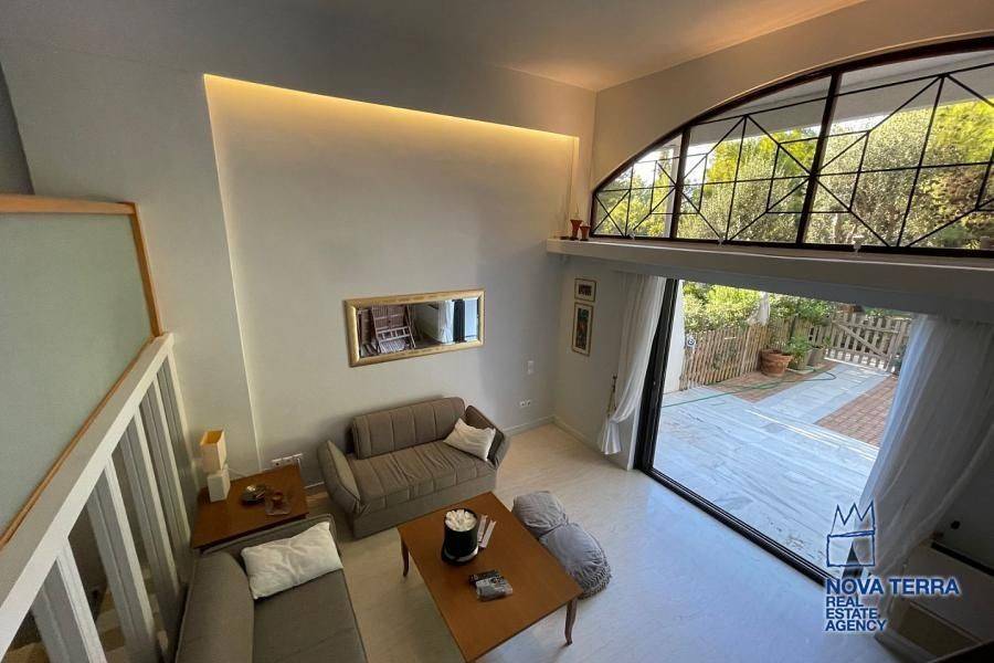VOULIAGMENI - KAVOURI, Duplex / Triplex Apartment, 60 sq.m, year built 1980, renovated in 2020, 1 rooms, Ground Floor, Elevated, Mezzanine, View: Woodland, Various Characteristics: Balcony, Bath (2), Furnished, Garden, Kitchen, Living room, Refurbished, Master Bedrooms: 1 Master Bedroom, Flooring: Murble, Wooden floor, Heating: Air Conditioning, Access road, Aluminium panels, Bright, Facade, From Side to Side, Luxury, Painted, Residential area, Security Door, In perfect condition: Energy class: Β, property ID: 46939, www.nova-terra.gr