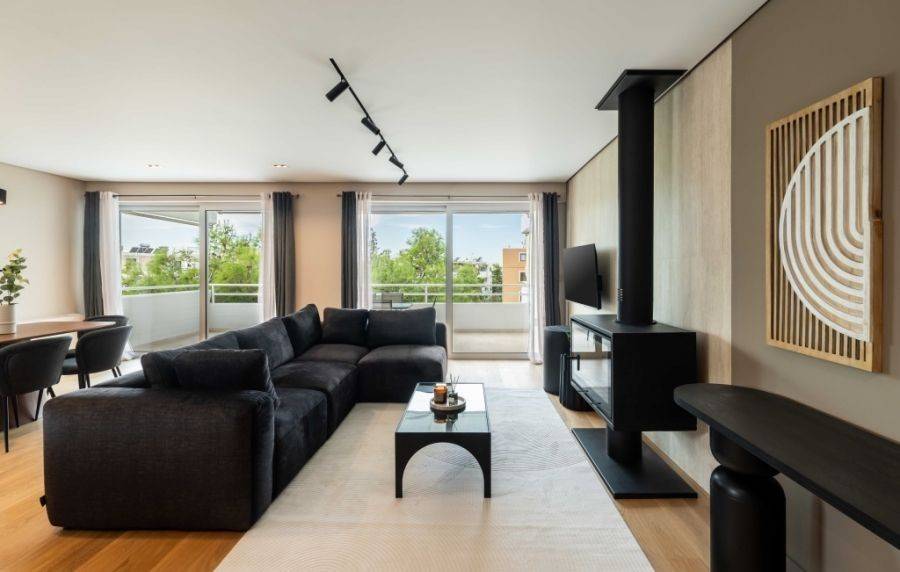 Glyfada, Kato Glyfada, Apartment For Rent, 100 sq.m., Property Status: Amazing, Floor: 4th, 2 Bedrooms 1 Kitchen(s), 1 Bathroom(s), 1 WC, Heating: Autonomous - Fan Coil, Building Year: 1985, Energy Certificate: B+, Floor type: Wooden floors, Type of doors: Aluminum, Features: Elevator, Security door, Security alarm, Storage room, Fireplace, Night stream, Internet Line, Electric Appliances, Double Glazed Windows, Balconies, Furnished, Luxury, Penthouse, Airy, Roadside, Bright, AirConditioning, Solar water system, Boiler, Painted, Renovated, Price: 2.250€. Yestayhomes, Tel: 6986749007