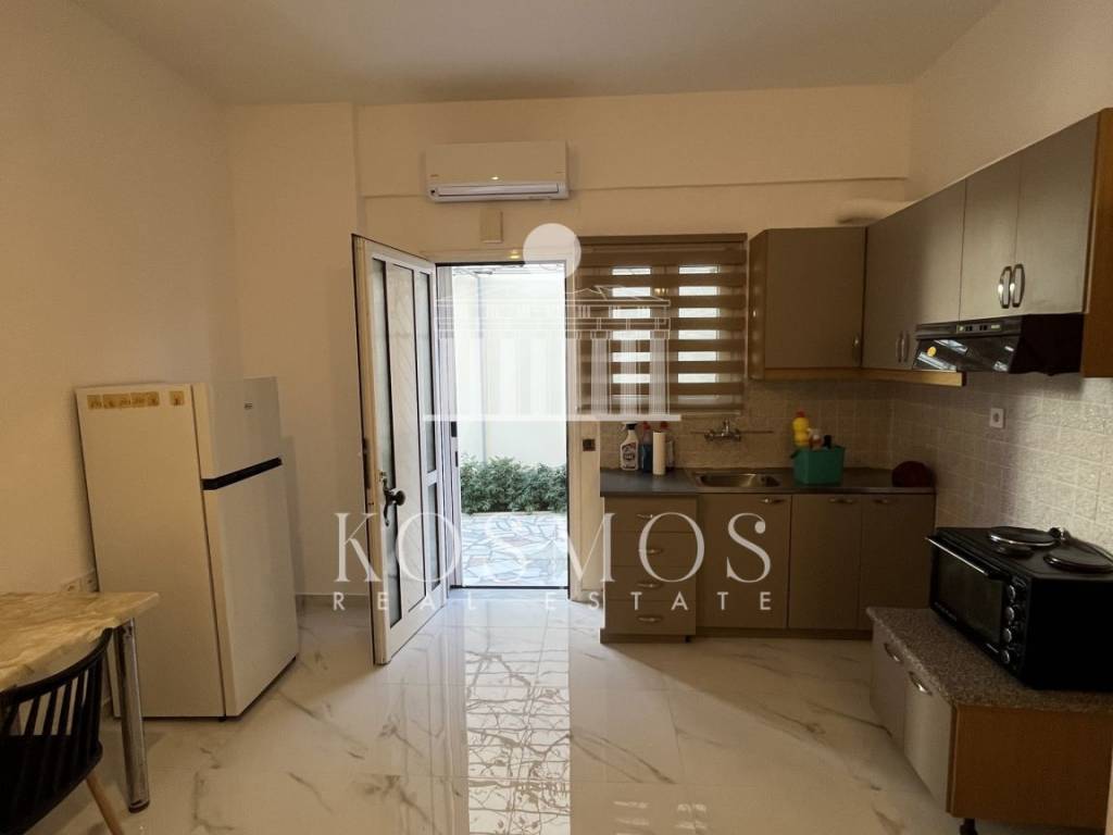 Available for rent is a fully renovated studio apartment of 35 sq.m., located on a raised ground floor in the Tris Vagies area of Heraklion, Crete. The property is situated on a 70 sq.m. plot and consists of one bedroom, one bathroom and a kitchen. Originally built in 2000, it was fully renovated in 2025, offering modern amenities and excellent energy efficiency. The apartment features autonomous electric heating, radiators, air conditioning, a solar water heater, boiler, thermal insulation and external thermal façade. It is equipped with aluminum window frames with double energy-efficient glazing, tiled floors and holds an A-rated energy certificate. The property is freshly painted, fully furnished and in excellent condition, ready for immediate occupancy. It is bright, with an east-west orientation and a pleasant view, and includes a veranda. The apartment is located in a quiet neighborhood with trees and has no shared communal expenses. Additional features include insect screens, electrical appliances and internet connection. Its location is highly convenient, close to public transportation, parks, schools, a kindergarten, a square, supermarkets and the city center. This property is an ideal choice for students. Monthly rent: €320. The indicated location is approximate. For further information or to arrange a viewing, please contact KOSMOS REAL ESTATE, property manager Orestis at +30 694 775 9954 or via email at orestis@kosmosrealestate.gr.