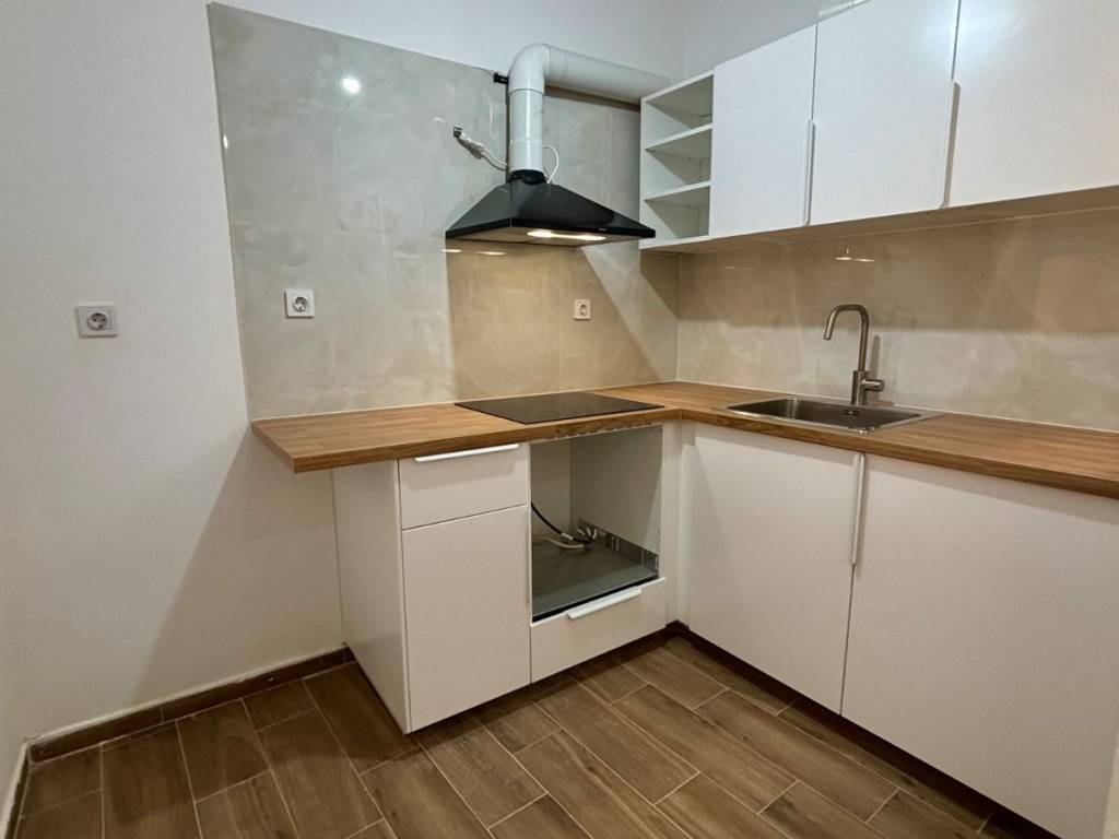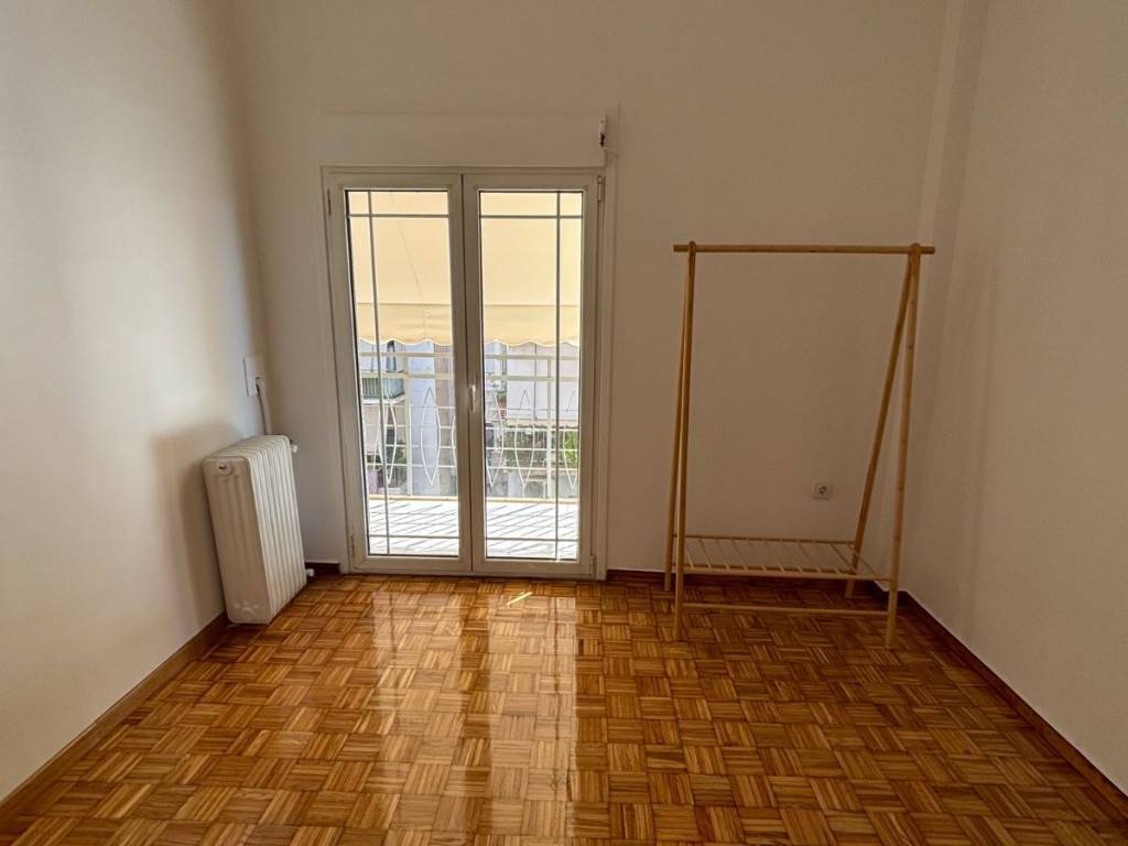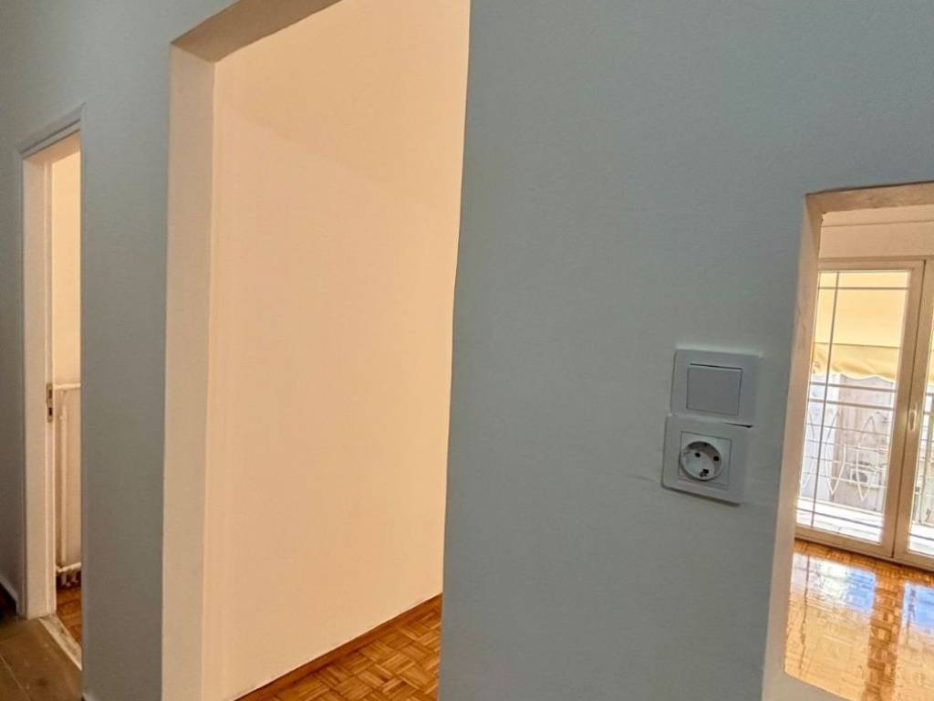 Bright and well-maintained apartment, ideal for comfortable everyday living. It features a spacious living area with wooden flooring and a large balcony door that allows plenty of natural light and leads to a comfortable balcony with an awning. The kitchen is renovated and functional, with white cabinets, a wooden countertop, built-in hob and extractor fan, making good use of the available space. The apartment is clean, with white walls and a neat overall appearance, ready for immediate occupancy. Suitable for a single person or a couple looking for a bright and pleasant home in a quiet area.