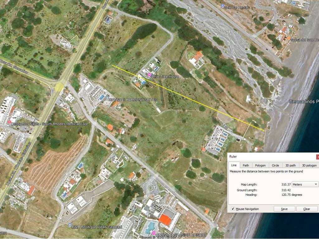 Οικόπεδο συνολικού εμβαδού 1000 τ.μ. με δυνατότητα δόμησης 172 τ.μ. (54 τ.μ. ισόγειο, 54 τ.μ. όροφος + 64 τ.μ. υπόγειο). Το οικόπεδο βρίσκεται στο Γεννάδι της Ρόδου σε απόσταση 300μ από τη θάλασσα, μία διαδρομή που διανύεται ελεύθερα χωρίς εμπόδια με τα πόδια σε λιγότερο από 5 λεπτά. Εφάπτεται στον κεντρικό δρόμο (επαρχιακή οδός Πυλώνας - Κατταβιάς), από τον οποίο υπάρχει άμεση πρόσβαση για είσοδο πεζών και οχημάτων. Το Γεννάδι είναι το κεντρικό χωριό της Δημοτικής Ενότητας Νότιας Ρόδου, στο οποίο βρίσκονται οι διοικητικές υπηρεσίες και το κέντρο υγείας. Οικισμός παραδοσιακός, τουριστικός, με μία από τις καλύτερες και πιο καθαρές παραλίες του νησιού. Διαθέτει φαρμακείο, σούπερ μάρκετ, Δημοτικό, Γυμνάσιο και Λύκειο και εμπορικά καταστήματα που καλύπτουν κάθε ανάγκη, εστιατόρια, καφετέριες, τουριστικά μαγαζιά και χώρους διασκέδασης, παραθαλάσσιους και μη. Το οικόπεδο βρίσκεται στην πλευρά της παραλίας, κάτω από τον κεντρικό δρόμο. Απέχει 600 μ. δρόμου από την κεντρική πλατεία του χωριού, 8 λεπτά περπάτημα ή ένα λεπτό με το αυτοκίνητο. Απέχει 350μ. από το κέντρο υγείας (5 λεπτά με τα πόδια), 500μ. από το κοντινότερο beach bar (7 λεπτά) και 650μ. από τα παραλιακά εστιατόρια (9 λεπτά). Σε απόσταση 20 χιλιομέτρων βρίσκεται η αρχαία πόλη της Λίνδου, το κεντρικότερο τουριστικό μέρος της Νότιας Ρόδου. Η επαρχιακή οδός συνδέει άμεσα την τοποθεσία του οικοπέδου με τη Λίνδο σε χρόνο 25 λεπτών. Η πόλη της Ρόδου και το λιμάνι βρίσκονται σε απόσταση 60 χιλιομέτρων, 1 ώρα διαδρομής με το αυτοκίνητο. Το αεροδρόμιο βρίσκεται σε απόσταση 65 χιλιομέτρων, 1 ώρα και 10 λεπτά διαδρομής με το αυτοκίνητο. Λόγω της θέσης της περιοχής του οικοπέδου, δυνατότητα δόμησης έχουν μόνο όσα οικόπεδα έχουν εξασφαλίσει προέγκριση άδειας μέχρι το 2025. Έτσι τα γειτονικά οικόπεδα δε μπορούν πλέον να οικοδομηθούν με αποτέλεσμα να διατηρηθεί το φυσικό περιβάλλον γύρω του άθικτο σε βάθος χρόνου. Περιλαμβάνεται ο πλήρης φάκελος εγγράφων για τις διαδικασίες δόμησης, συμπεριλαμβανομένης της προέγκρισης οικοδομικής άδειας: -πιστοποιητικό ιδιοκτησίας -τοπογραφική αποτύπωση -θεώρηση όρων δόμησης -αιτιολογική τεχνική έκθεση -βεβαίωση κτηματολογικής έρευνας -προέγκριση οικοδομικής άδειας -αρχιτεκτονικά σχέδια Το οικόπεδο είναι ιδανικό για ιδιοκατοίκηση, για εξοχική κατοικία και για τουριστική εκμετάλλευση. Πρόκειται για κεντρικό σημείο μίας περιοχής με μεγάλη τουριστική ζήτηση όπου τα καταλύματα έχουν κάθε χρόνο πληρότητα.
