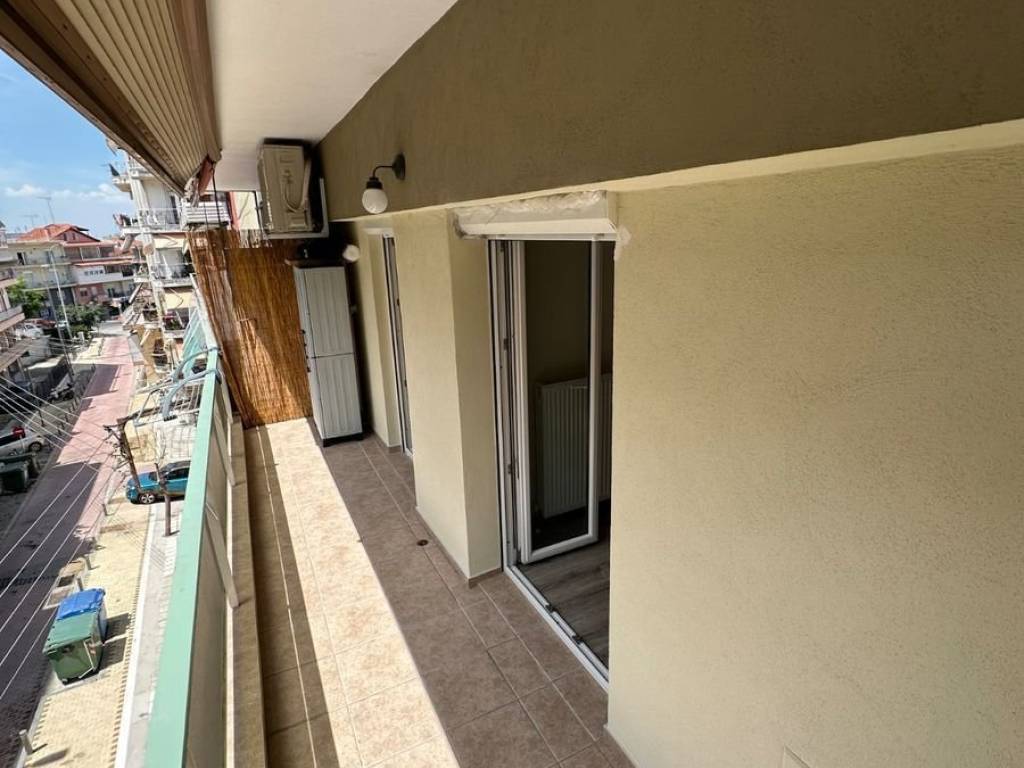 For rent renovated apartment of 80sqm in Sykies, Thessaloniki, on the 3rd floor of an apartment building with an elevator. It consists of 2 bedrooms, living room, kitchen, wc, balcony in front and a small closed balcony in the back for storage. The apartment has a security door, air conditioning and autonomous natural gas heating. The kitchen is equipped with electrical appliances: Refrigerator, dishwasher, oven, microwave and gas hobs.