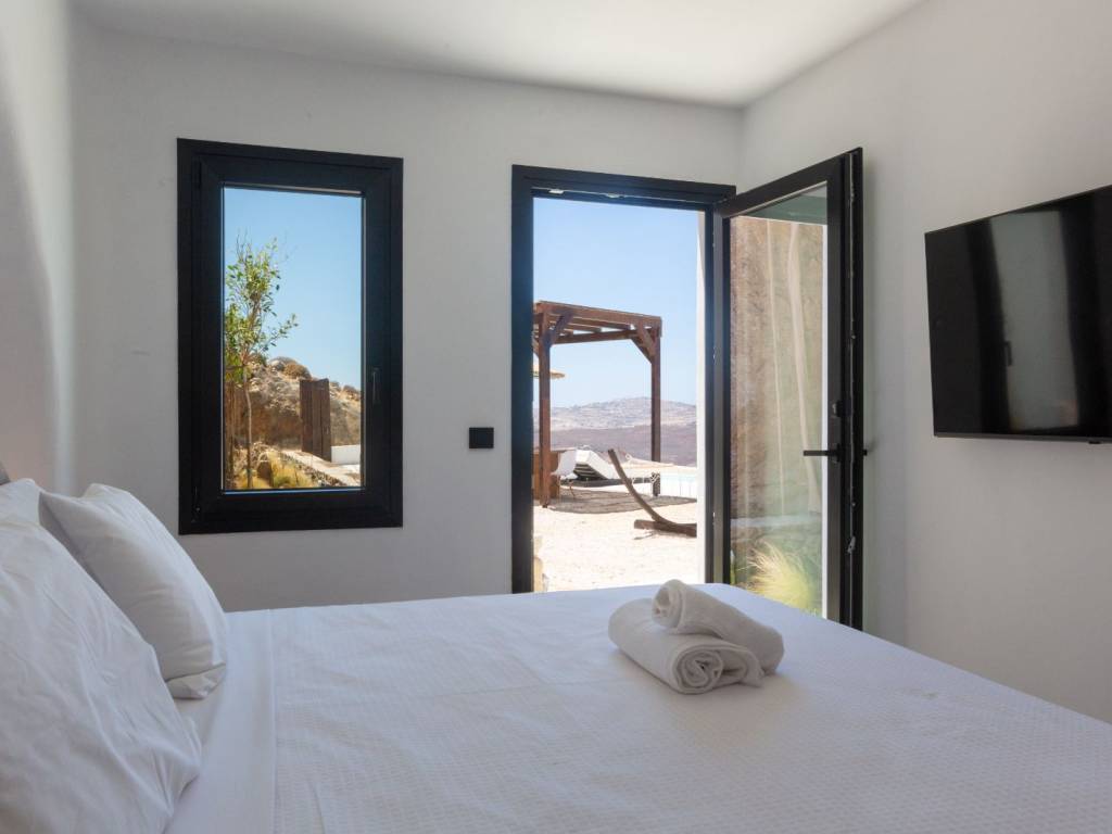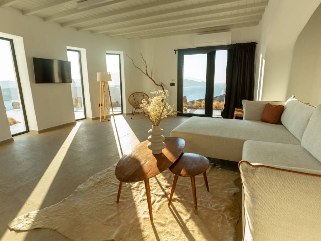 New villa offering unobstructed sea views & sunset view, a private infinity pool and absolute comfort with modern furnishings. Located just 1 km from Ftelia beach. It has an independent storage & parking space. Ideal for commercial use.