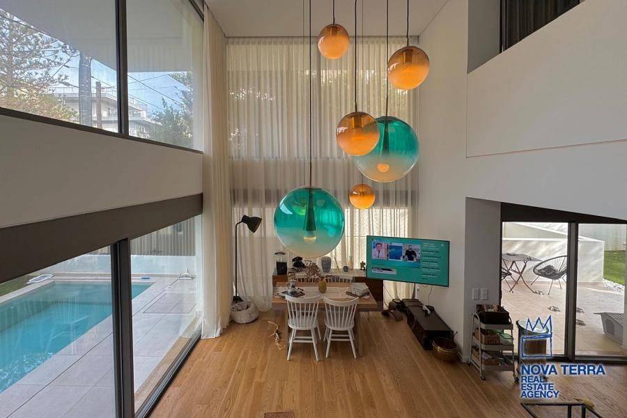 VOULA - VOULA KATO Luxury maisonette for sale in Voula built in 2021. It has a bright sitting area with large windows, on the ground floor there is a living/dining room and an open kitchen. There is a bathroom with shower and a bedroom. Going up stairs we find on the 1st floor the second bedroom and another room that is in use of an office and has the possibility of becoming a third bedroom, there is another bathroom with a shower. The property has a private swimming pool and a 170 sq.m garden for seating area and BBQ. There is one underground parking space and storage room. Various Characteristics: Air Conditioning, Autonomous Heating (auto-system), Under Floor heating, Access road, Aluminium panels, Bright, Double-glazing, Electric Roller Windows, Facade, From Side to Side, Luxury, Minimal, Satellite TV, Screens, Security Alarm, Security Door, In perfect condition, Energy class: Α+. property ID: 46697, www.nova-terra.gr