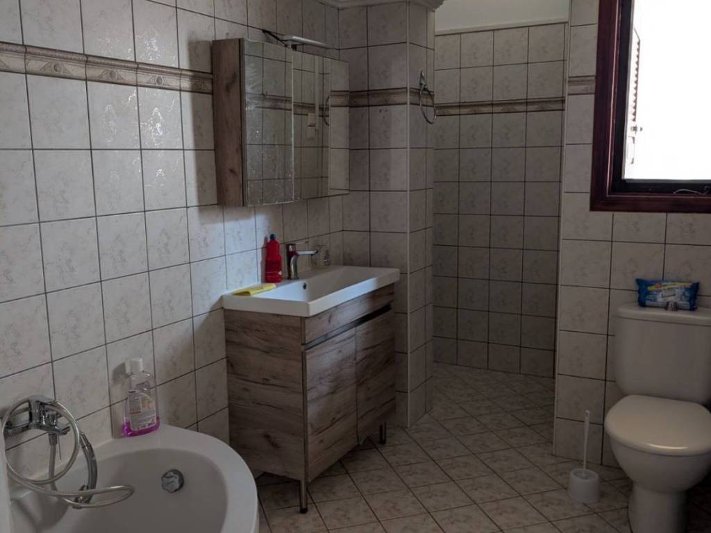 Nea Alikarnassos, Karteros: four-room apartment for rent, 110 sq.m. on the ground floor. It consists of 3 bedrooms, 1 single living room-kitchen area, loft, bathroom and yard with garden. It has tiled floors, wooden frames, independent oil heating, air conditioning, fireplace, solar water heater and independent PPC clock.. Price €800 | Property Code: #VS7352