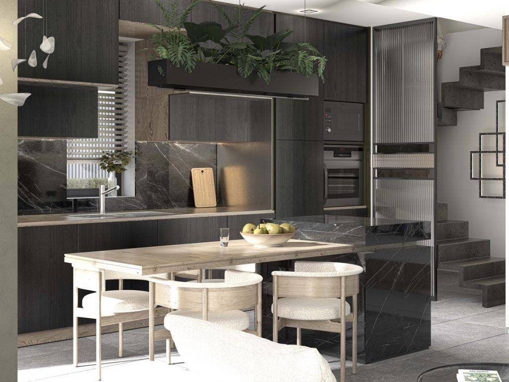 • 2 three-storey detached houses of 140,23 m² (living room/kitchen, dining room, 4 bedrooms, 3 bathrooms). On the ground floor of the house there is a living room/kitchen, dining room, one bedroom and bathroom. An internal staircase leads to the first floor of the house which accommodates 2 bedrooms, 2 bathrooms and terraces. In the attic is the 4th bedroom and a large terrace with unique views and design. The courtyard is beautifully landscaped with a barbecue and a private pool while there is a parking space next to the house.