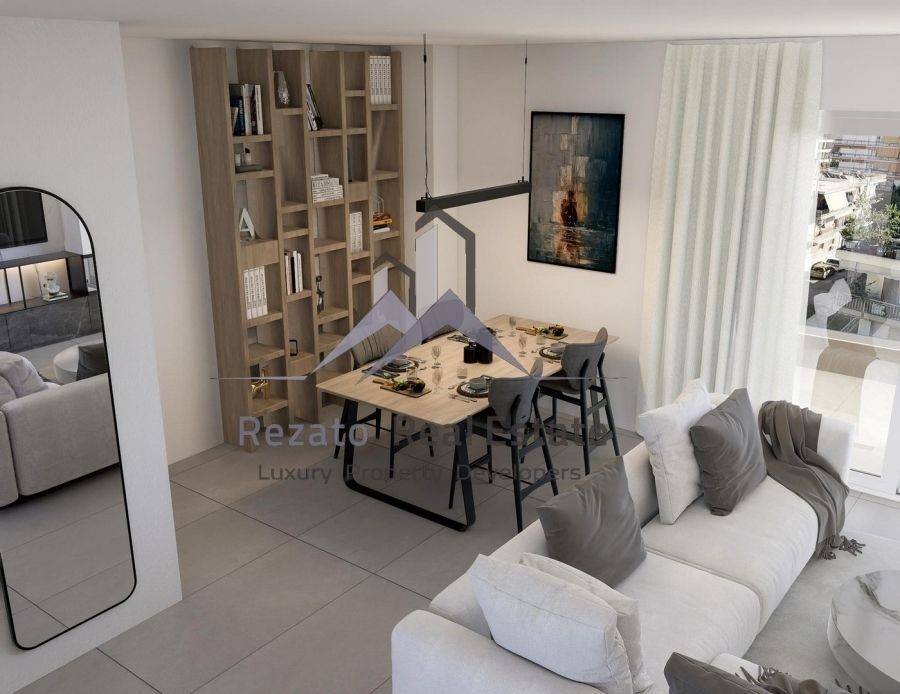 Nea Smyrni, Alsos, Floor Apartment For Sale, 96 sq.m., Property Status: under construction, Floor: 3rd, 1 Level(s), 2 Bedrooms 1 Kitchen(s), 1 Bathroom(s), 1 WC, Heating: Personal, Building Year: 2024, Energy Certificate: A, 1 parking(s), Floor type: Granite + Wooden floors, Features: Elevator, Security door, CCTV, Storage room, Satellite Receiver, Internet Line, Double Glazed Windows, Window Screens, Balconies, Luxury, Airy, Roadside, Bright, Boiler, Price: 360.000€. Rezato Properties Real Estate, email: info@rezatoproperties.gr