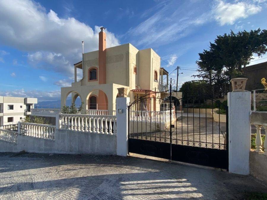 Τwo-storey detached house with a basement in total 230m2 is available for sale within the city of Agios Nikolaos. It is 800 meters from an organized sandy beach and 65 km from Heraklion international airport. Specifically, it consists of: The ground floor of 69.83m2 which has an open-plan kitchen, dining room and living room with fireplace. The first floor of 56.93m2 has three bedrooms and a bathroom. The basement of 103.77m2 includes an open area kitchen, living room, dining room, two bedrooms and two bathrooms. It offers views of the sea and the surrounding area while being close to the city's amenities.