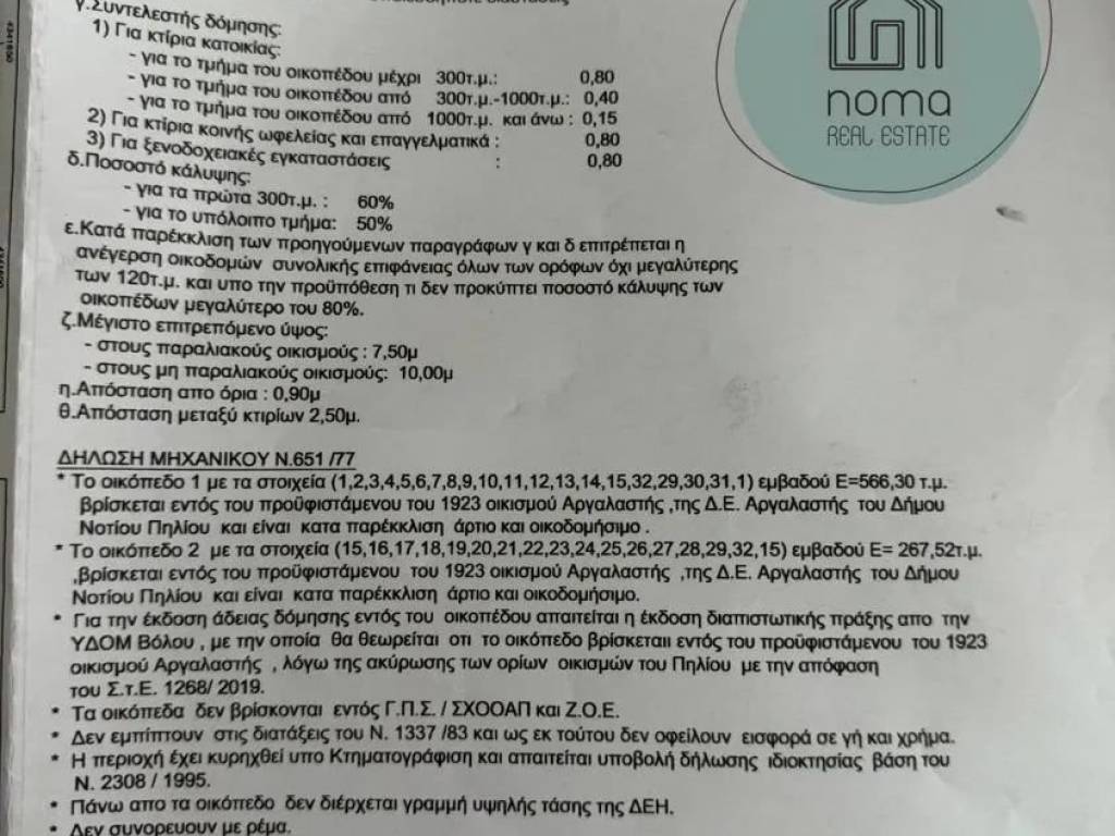 Πωλείται από το μεσιτικό γραφείο Noma διώροφη μονοκατοικία 108,90τ.μ. και ισόγεια αποθήκη 6.90τ.μ. σε οικόπεδο 833,82τ.μ. . Πρόκειται για διώροφη μονοκατοικία με ενιαίο ισόγειο 54,45τ.μ. και 1ο όροφο 54,45τ.μ. αποτελούμενο από σαλόνι , υπνοδωμάτιο και κουζίνα . Η ισόγεια αποθήκη είναι μπάνιο. Διαθέτει τζάκι για θέρμανση. Χρήζει ανακαίνισης. Περάστηκε νέα σκεπή το 2012. Βρίσκεται σε ήσυχη γειτονιά , κοντά στο κέντρο της Αργαλαστής και κοντά στη τοπική αγορά. Βρίσκεται επίσης κοντά σε πολλές παραλίες του Αιγαίου. Ιδανική λόγω τοποθεσίας τόσο για εκμετάλλευση όσο και για ιδιοκατοίκηση.