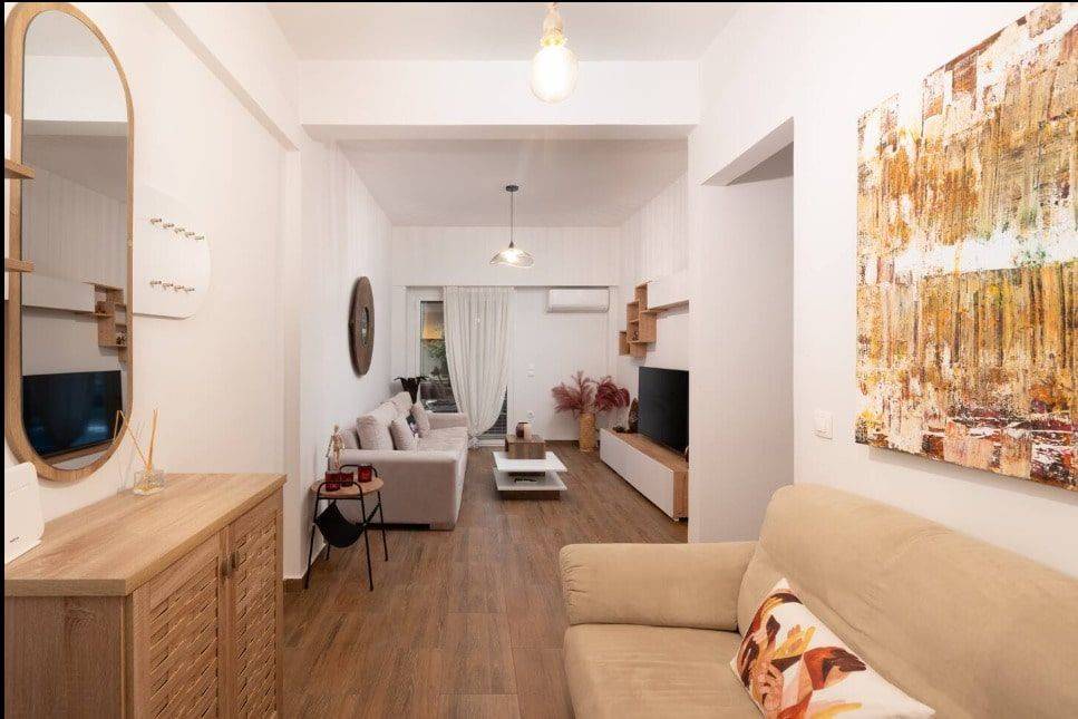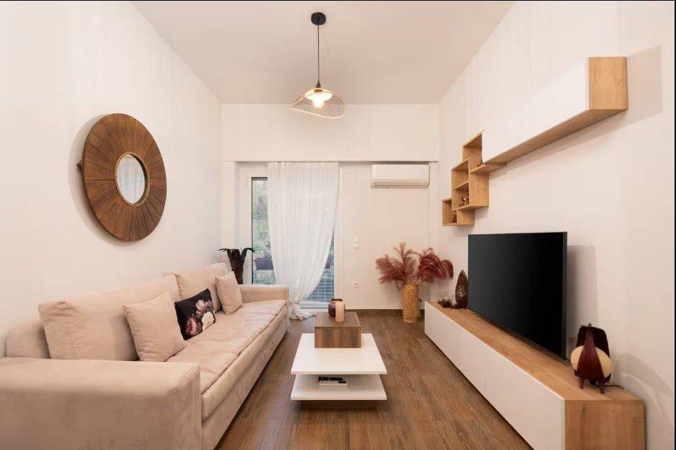 Damareos 101, Pagkrati, upper ground floor 50 sq m (1970) The apartment is fully furnished and equipped with electrical appliances - kitchen, refrigerator, microwave oven, washing machine, two air conditioners. Veranda with awnings, aluminum windows, 1 bedroom, kitchen, bathroom, security door, 2 km from Evangelismos metro station.