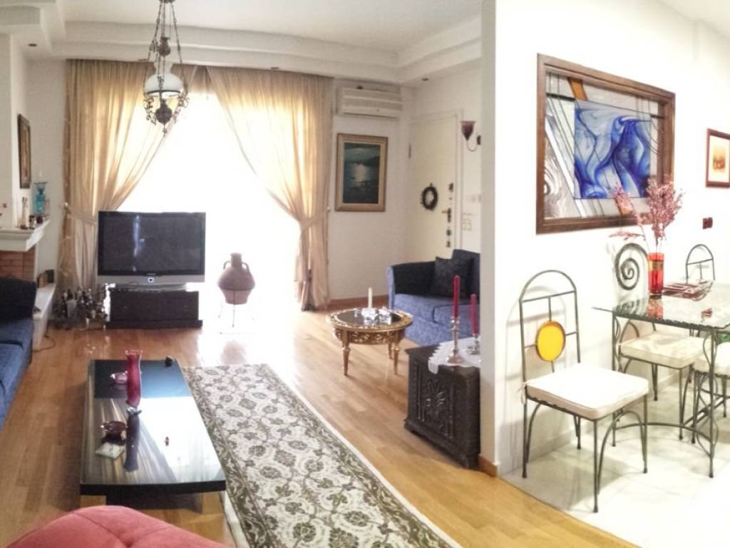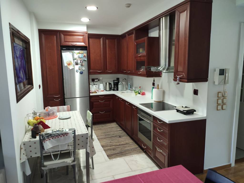 Ξύλινο πάτωμα σε όλο το σπίτι , μάρμαρο πεντελικό στο πάτωμα της κουζίνας , πάγκος κουζίνας corian. Εντοιχισμένα ηλεκτρικά είδη . Στο μπάνιο υπάρχει μπανιέρα υδρομασάζ κ στο δεύτερο ντουζιέρα . Στο μπαλκόνι υπάρχει barbecue. Αποθήκη 13τμ στο υπόγειο