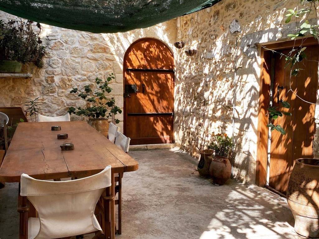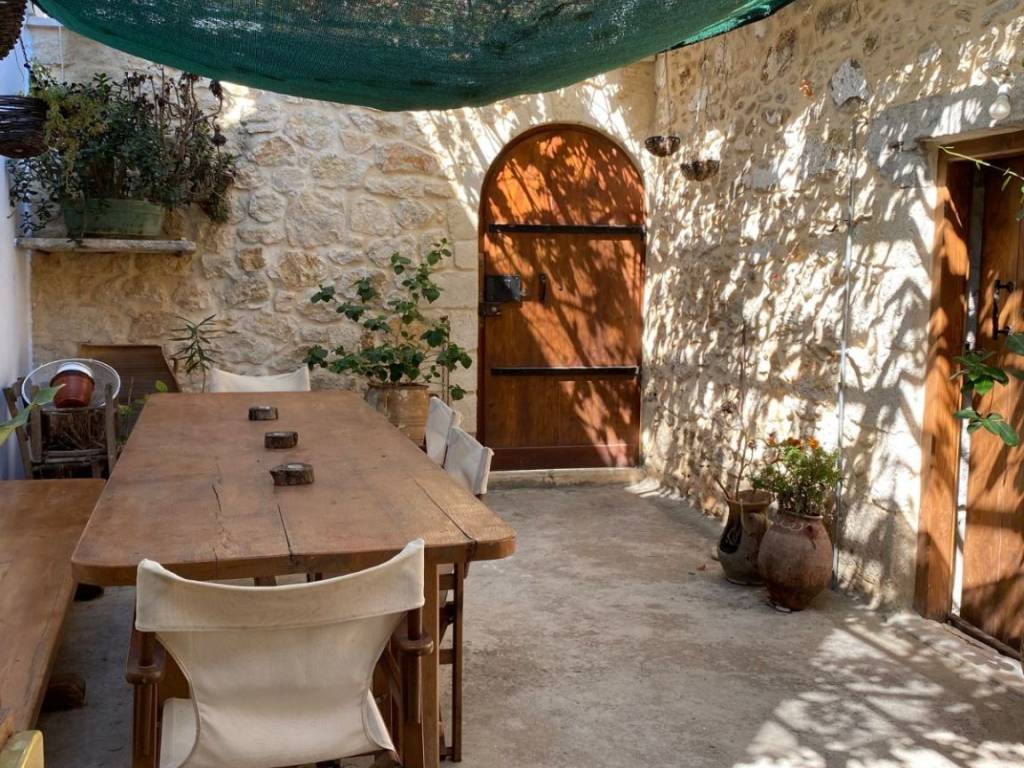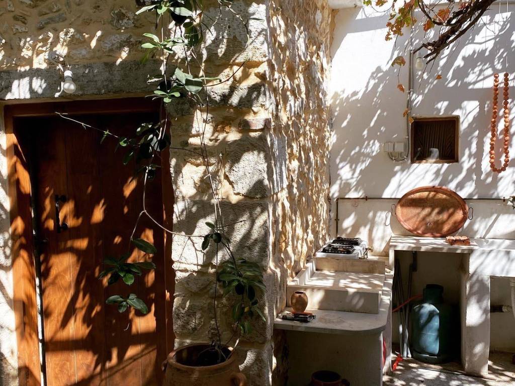 Traditional Stone-Built House (1910) in Misiria, Rethymno – 100m from the Sea Description: Traditional ground-floor residence for rent in the Misiria district of Rethymno, fully renovated with deep respect for Cretan folk architecture. The property is located in the heart of the local market and just 100 meters from the beach. The property consists of two autonomous dwellings sharing a picturesque internal courtyard: 1. Small Cottage (30 sq.m.): 1 double bedroom and a separate living area with a kitchenette. Price: 350€ 2. Main House (80 sq.m.): 2 bedrooms, living room with a fireplace, built-in sofas, and a dining area. Price: 650€ Features: • Aesthetics: Fully furnished with authentic Cretan folk art antiques and handcrafted built-in bathrooms. • Amenities: Air conditioning (A/C), electric heaters, dehumidifiers. • Unique Detail: The bathrooms are located outdoors (within the private courtyard), staying true to the authentic layout of the era. Ideal For: Exclusively for those who appreciate tradition and historical architecture, seeking the experience of a bygone era combined with modern comforts. This property is not intended for those looking for modern, mass-produced apartments. Availability: Immediately until June (duration negotiable).